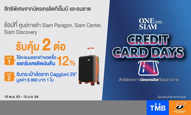 บัตรเครดิตทีเอ็มบีและธนชาต ชวนช้อปเฉลิมฉลองเทศกาลแห่งความสุขรับคุ้ม 2 ต่อ แลกรับเครดิตเงินคืน 12% พร้อมรับกระเป๋าล้อลากสุดหรู