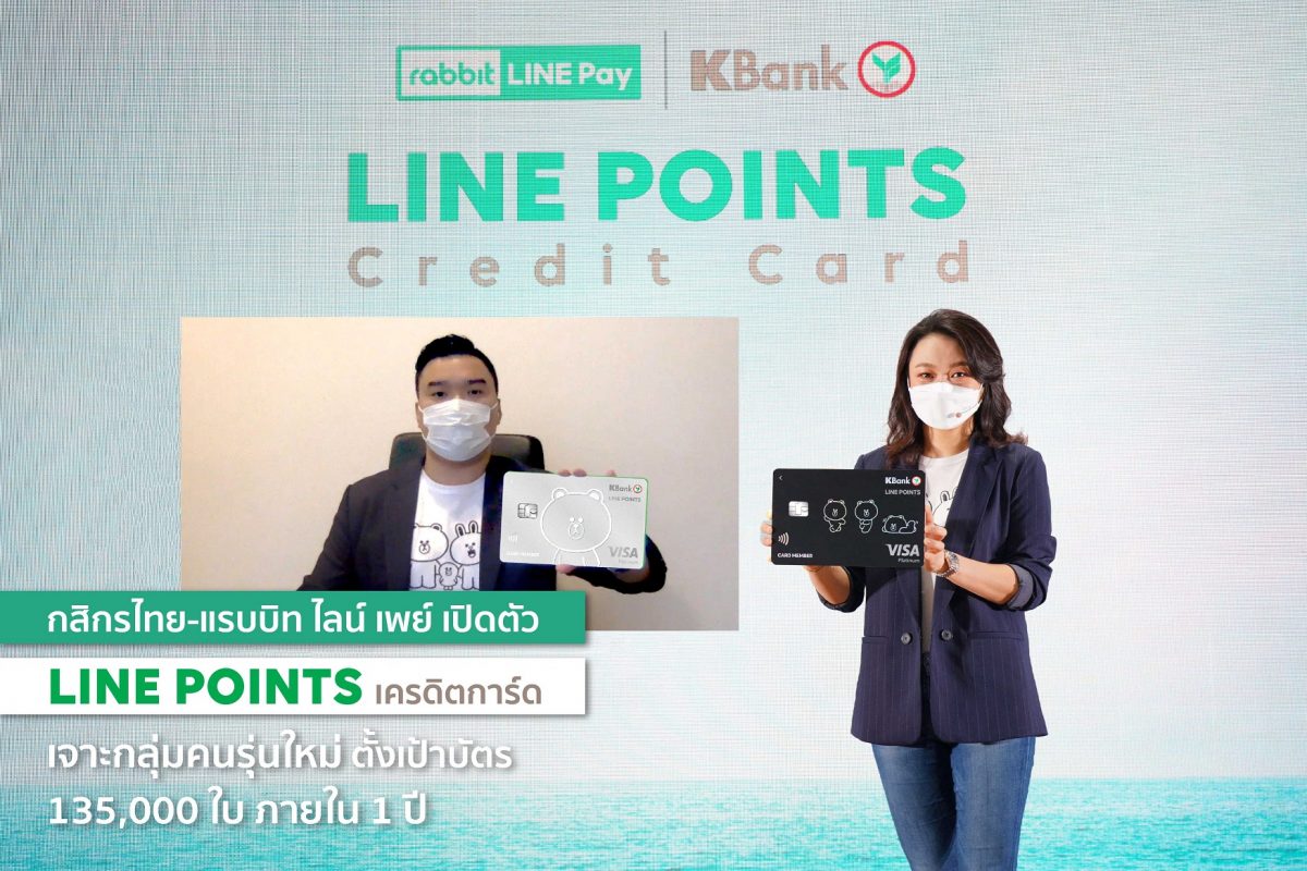 ธนาคารกสิกรไทย และ แรบบิท ไลน์ เพย์ เปิดตัว “LINE POINTS เครดิตการ์ด” โดยใช้ความน่ารักของ คาแรคเตอร์ LINE FRIENDS มาเป็นจุดเด่น ไม่ว่าจะเป็นคาแรคเตอร์ดังอย่าง บราวน์ (Brown), โคนี่ (Cony) และแซลลี่ (Sally) มาตอบรับการใช้จ่ายแบบนิวนอร์มอลทั้งเจาะกลุ่มคนรุ่นใหม่ ที่นิยมใช้บัตรเครดิตในการใช้จ่ายในชีวิตประจำวัน ชูคอนเซปต์ “คืนเยอะ ได้ไว ใช้ให้สุด” จัดเต็มแรงด้วย LINE POINTS คืน 3 % ทุกยอดใช้จ่าย ไม่มีเพดาน*, 1 LINE POINT เท่ากับ 1 บาท เมื่อใช้ LINE POINTS แลกซื้อสินค้าหรือบริการจากร้านค้าพันธมิตรของ Rabbit LINE Pay กว่า 300,000 ร้านค้า และยังได้ LINE POINTS ไวภายใน 1 วัน ฉีกรูปแบบการให้พอยท์บัตรเครดิตแบบเดิมๆ โดย ตั้งเป้าภายใน 1 ปีมีลูกค้าสมัครบัตร 135,000 ใบ และมียอดใช้จ่ายผ่านบัตร 2,900 ล้านบาท