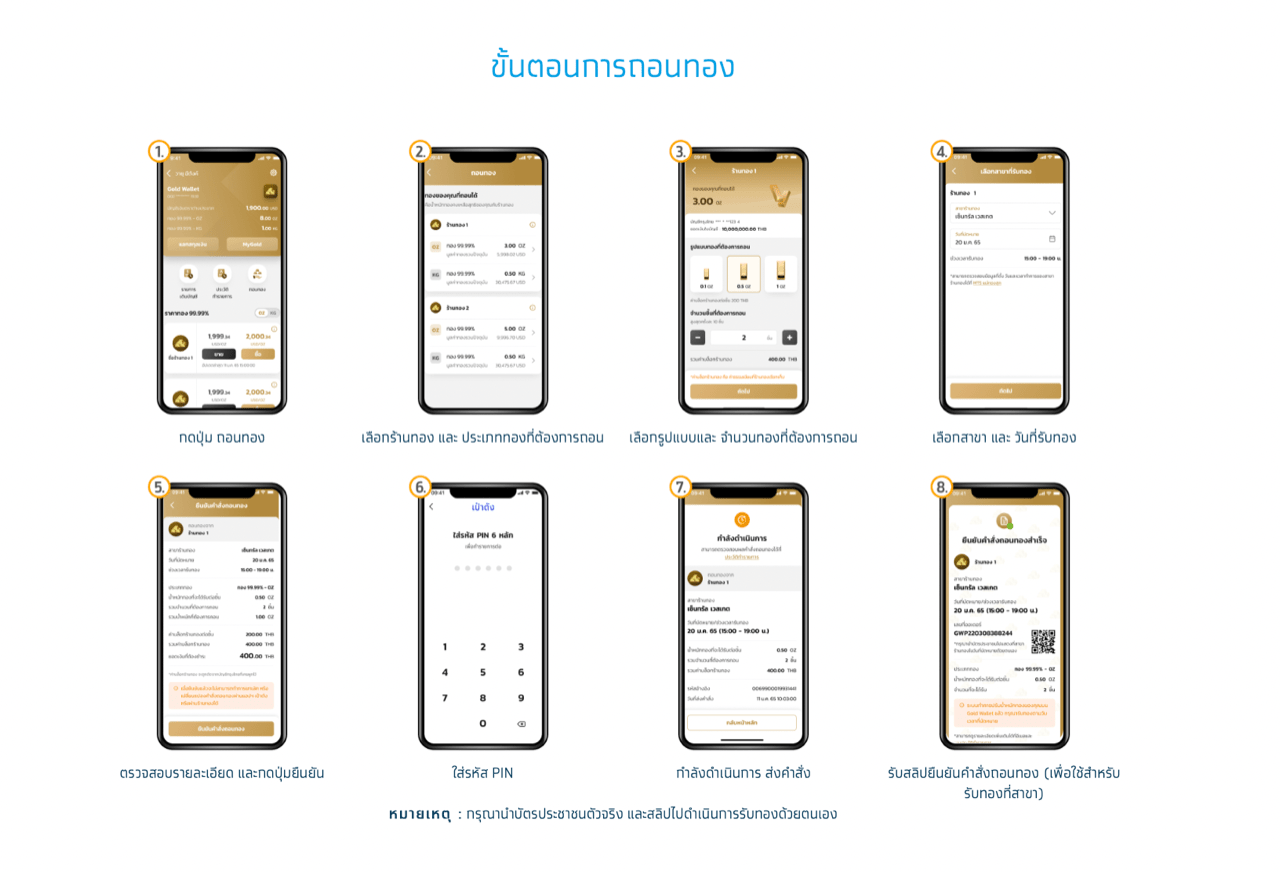 ล่าสุด ธนาคารได้เปิดตัวบริการใหม่ “ถอนทองออนไลน์” บนแอปฯ เป๋าตัง เพื่อเพิ่มความเชื่อมั่นให้นักลงทุนสามารถลงทุนในทองคำได้แบบครบวงจร ทั้งซื้อ ขาย และถอนทองคำได้ ทุกที่ สะดวก รวดเร็ว และปลอดภัย และทันต่อสถานการณ์ที่เกิดขึ้น โดยนักลงทุนสามารถส่งคำสั่งถอนทองแท่งบริสุทธิ์ 99.99% ที่จำนวนขั้นต่ำเพียง 0.1 ออนซ์ ให้กับร้านทองแบบออนไลน์ได้ทุกวัน ตั้งแต่เวลา 01:00 น. – 22:30 น. โดยสามารถรับทองได้ภายใน 3 วันนับจากวันที่ส่งคำสั่งถอนทองสำเร็จ เพียงแสดงบัตรประชาชนและสลิปการทำรายการไปยืนยัน เพื่อรับทองด้วยตัวเองที่สาขาร้านแม่ทองสุกที่เลือกผ่าน Gold Wallet รวม 5 สาขา ได้แก่ สาขาเซ็นทรัลปิ่นเกล้า สาขาเซ็นทรัล เวสเกต สาขากรอบพระ สาขาวงเวียนใหญ่ และ สาขาดิโอลด์สยาม