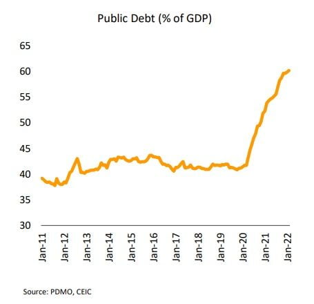 ปัจจุบันการใช้เงินกู้ตามพ.ร.ก.กู้เงิน 5 แสนล้านบาท ยังมีวงเงินคงเหลืออยู่ประมาณ 7.4 หมื่นล้านบาท และงบกลางเหลืออยู่ 6 หมื่นล้านบาท (กันไว้ใช้สำหรับภัยพิบัติ 3-4 หมื่นล้านบาท) ทั้งนี้ สำนักงานบริหารหนี้สาธารณะประเมินว่าหากรัฐบาลมีความจำเป็นต้องกู้เพิ่ม จะยังสามารถมีพื้นที่ทางการคลังกู้เงินเพิ่มได้อีกประมาณ 1.3 ล้านล้านบาท ถึงจะเต็มเพดานหนี้สาธารณะที่ขยายกรอบจาก 60% เป็น 70% ต่อ GDP (ล่าสุด ณ สิ้นเดือนกุมภาพันธ์ 2565 หนี้สาธารณะอยู่ที่ 60.17% ของ GDP) อย่างไรก็ตาม รัฐบาลระบุเตรียมเปิดเวทีสาธารณะในเดือนพฤษภาคมนี้ เพื่อรับฟังความคิดเห็นจากทุกระดับและทุกภาคส่วน เพื่อนำข้อเสนอต่างๆ มาจัดทำเป็นแผนฟื้นฟูเศรษฐกิจที่ได้รับผลกระทบทั้งจากการระบาดของ COVID-19 และสถานการณ์ความขัดแย้งของรัสเซีย-ยูเครน