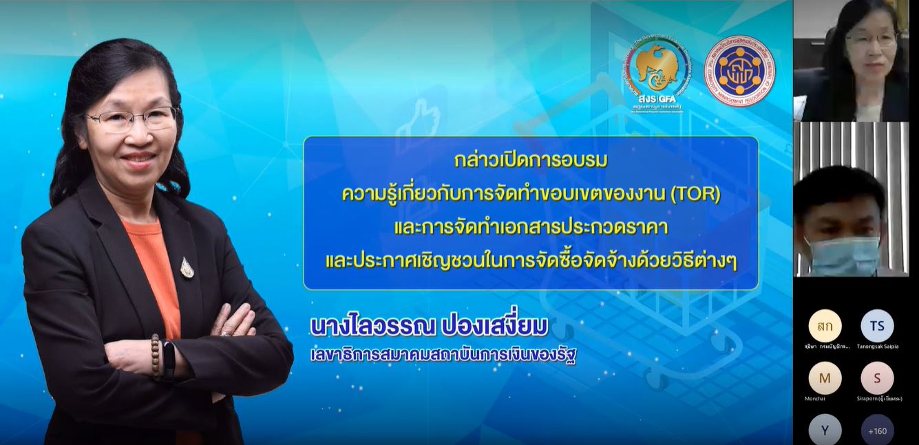 สมาคมสถาบันการเงินของรัฐจัดอบรมออนไลน์ เรื่อง ความรู้เกี่ยวกับการจัดทำขอบเขตของงาน (TOR) และการจัดทำเอกสารประกวดราคาและประกาศเชิญชวนในการจัดซื้อจัดจ้างด้วยวิธีต่างๆ