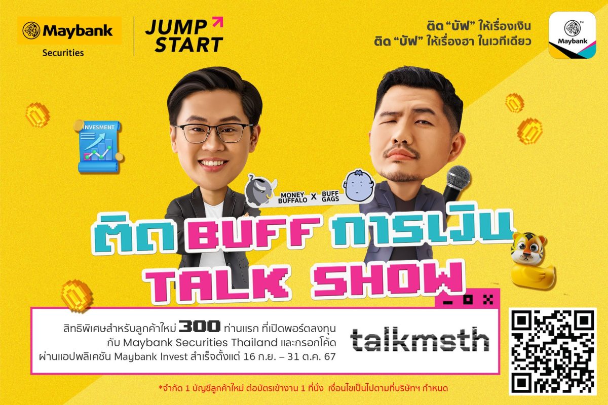 บริษัท หลักทรัพย์ เมย์แบงก์ (ประเทศไทย) จำกัด (มหาชน) เตรียมจัดงาน “ติด BUFF การเงิน TALK SHOW” ครั้งแรกในรูปแบบฟินฟลูเอนเซอร์ทอล์คโชว์ในไทย กับสองหนุ่มอารมณ์ดีชื่อดังจากเพจการเงิน Money Buffalo และอินฟลูเอนเซอร์ Buff Gags ร่วมให้ความรู้ด้านการเงินการลงทุน แบบจัดเต็มทั้งสาระและความบันเทิง งานจะจัดขึ้นในวันพฤหัสบดีที่ 14 พฤศจิกายน 2567 ณ โรงภาพยนตร์ EARTHLAB ชั้น 9 (SF World Cinema Central World) ศูนย์การค้าเซ็นทรัลเวิลด์