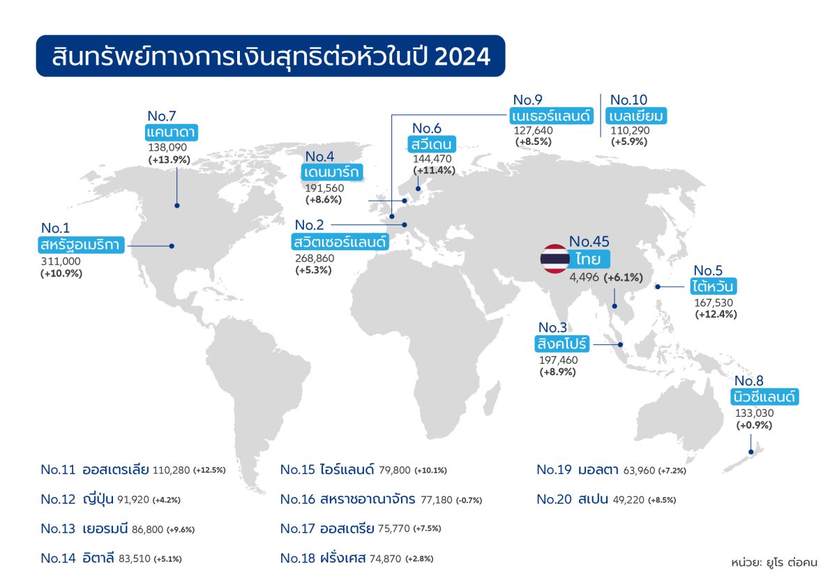 - ปี 2024 เป็นอีกหนึ่งปีทองของสินทรัพย์การเงินภาคครัวเรือนทั่วโลก เติบโต 7%