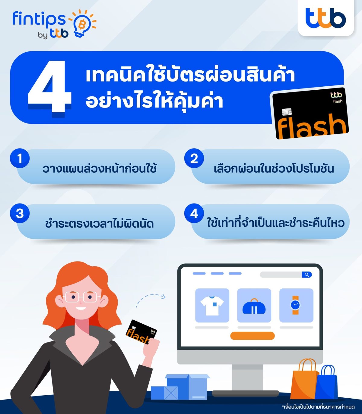 คลิกเพื่ออ่านบทความฉบับเต็มได้ที่ https://www.ttbbank.com/th/fin-tips/detail/shopping-installment-card หรือ ติดตามเคล็ดลับการเงินอื่น ๆ จาก “fintips by ttb” เรื่องเงินที่รู้จริงแบบเพื่อนที่รู้ใจ คลิก https://www.ttbbank.com/link/fintips-pr