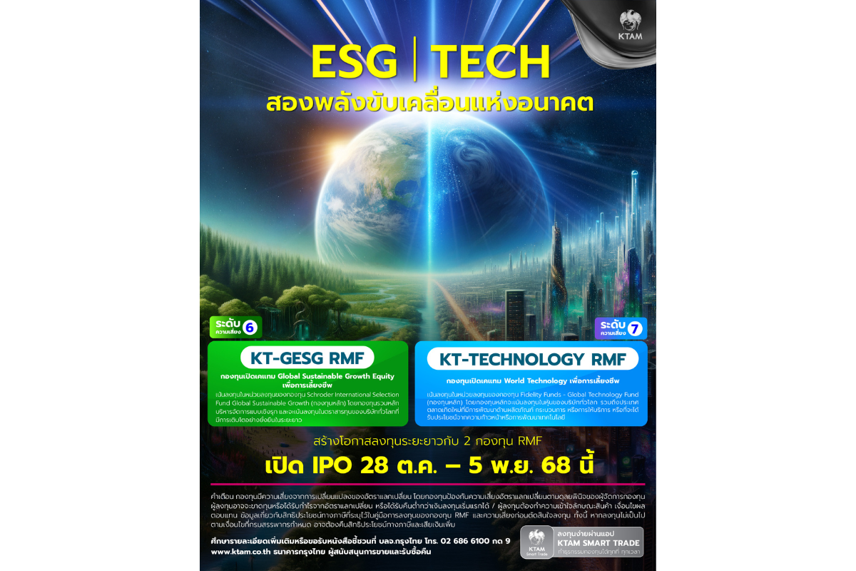 นางชวินดา หาญรัตนกูล กรรมการผู้จัดการ บริษัทหลักทรัพย์จัดการกองทุน กรุงไทย จำกัด (มหาชน) (KTAM) เปิดเผยว่า ปัจจุบันกลุ่มอุตสาหกรรมเทคโนโลยียังสามารถเติบโตได้อย่างโดดเด่นและต่อเนื่อง จากความก้าวหน้าของเทคโนโลยีปัญญาประดิษฐ์ (AI) ซึ่งเป็นหนึ่งในเทคโนโลยีที่กำลังเติบโตได้เร็ว รวมถึงหุ้นในบริษัททั่วโลกที่มีการนำปัจจัยด้าน ESG มาวิเคราะห์การลงทุน ซึ่งมองว่าเป็นโอกาสการลงทุนที่น่าสนใจและสามารถสร้างโอกาสเติบโตในระยะยาวได้ ฯ จึงได้เปิดเสนอขาย 2 กองทุนรวมเพื่อการเลี้ยงชีพ (RMF) เพื่อเป็นทางเลือกสำหรับนักลงทุนที่ต้องการสิทธิประโยชน์ทางภาษี โดยเปิดเสนอขายครั้งแรกระหว่างวันที่ 28 ต.ค. – 5 พ.ย. 68 นี้ ทั้ง 2 กองทุน ประกอบด้วย
