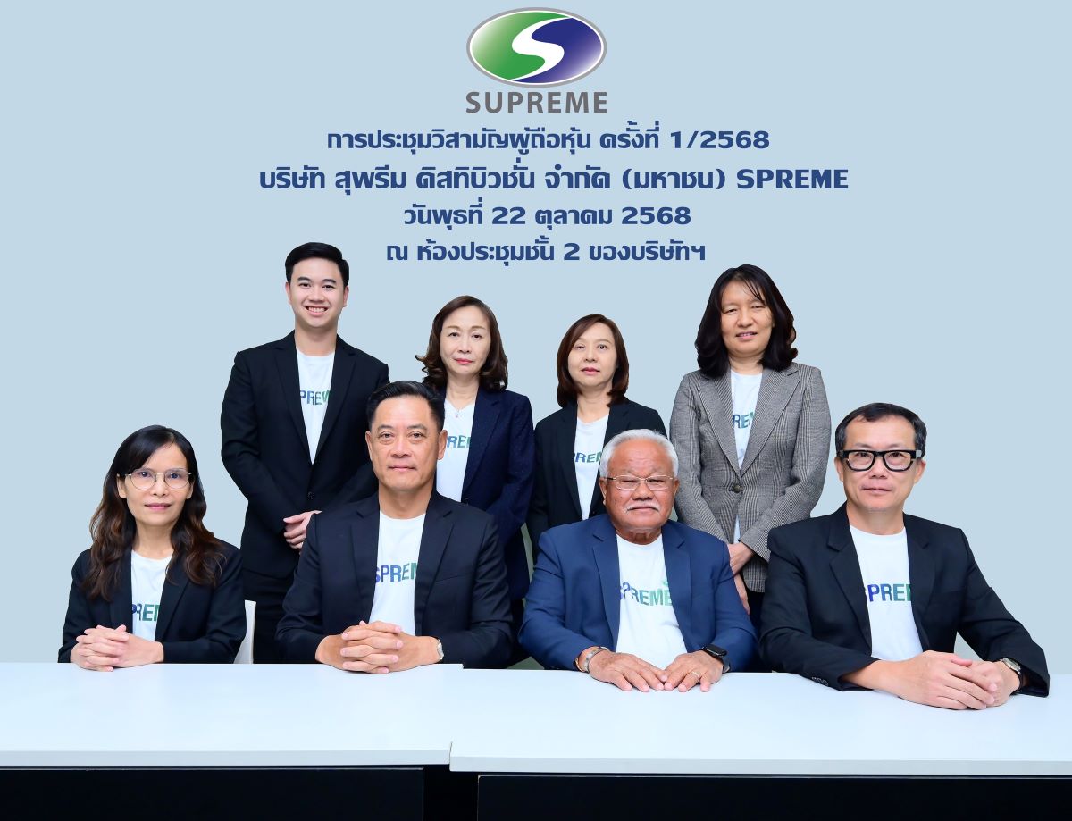 บมจ.สุพรีม ดิสทิบิวชั่น (SPREME) จัดประชุมวิสามัญผู้ถือหุ้นครั้งที่ 1/2568 โดยผู้ถือหุ้นมีมติอนุมัติให้บริษัทฯ ลงทุนในสินทรัพย์ถาวรวงเงินไม่เกิน 1,300 ล้านบาท สำหรับโครงการที่มีการประกาศจัดซื้อจัดจ้างแล้ว ณ วันที่ 12 กันยายน 2568 และอนุมัติเพิ่มกรอบวงเงินลงทุนเพิ่มอีกไม่เกิน 3,200 ล้านบาท สำหรับโครงการที่อยู่ระหว่างประกาศร่างรายละเอียดคุณลักษณะเฉพาะ (TOR) เพื่อรับฟังความคิดเห็นสาธารณะ รวมมูลค่าสินทรัพย์ที่คาดว่าจะลงทุนทั้งหมด ไม่เกิน 4,500 พันล้านบาท ทั้งนี้ จากการประเมินแนวโน้มตลาดการให้เช่าอุปกรณ์เทคโนโลยีในภาครัฐ พบว่ามีการเติบโตอย่างต่อเนื่อง ซึ่งจะช่วยสร้างรายได้ประจำ (Recurring Income) และผลตอบแทนที่ยั่งยืนให้แก่บริษัทฯ ในระยะยาว