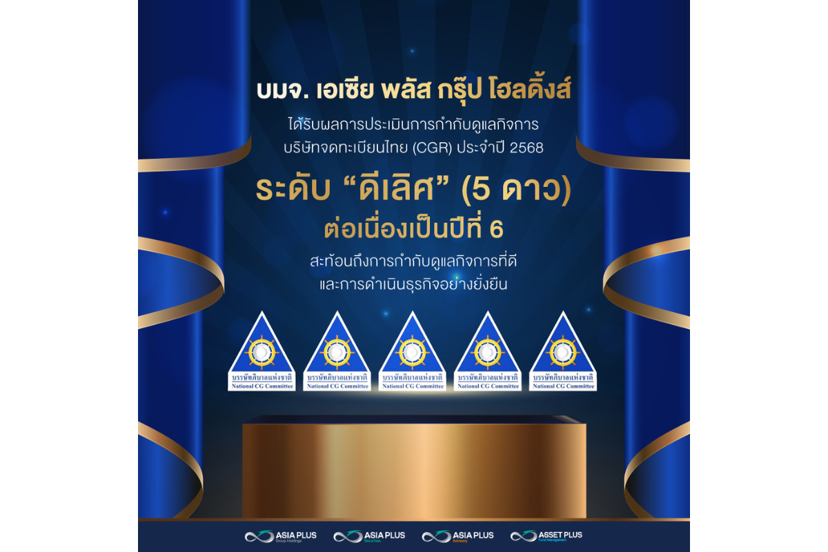 บริษัท เอเซีย พลัส กรุ๊ป โฮลดิ้งส์ จำกัด (มหาชน) หรือ ASP ได้รับผลประเมินการกำกับดูแลกิจการบริษัทจดทะเบียนไทย (Corporate Governance Report: CGR) ประจำปี 2568 จากสมาคมส่งเสริมสถาบันกรรมการบริษัทไทย (IOD) ในระดับ “ดีเลิศ (5 ดาว)” ต่อเนื่องเป็นปีที่ 6 ยิ่งไปกว่านั้น ในปีนี้บริษัทยังอยู่ในระดับ Top Quartile ของกลุ่มบริษัทที่มีมูลค่าทางการตลาด 3,000 – 10,000 ล้านบาท ซึ่งมีจำนวนบริษัทที่อยู่ในกลุ่มนี้ถึง 173 บริษัท สะท้อนให้เห็นถึงมาตรฐานการกำกับดูแลกิจการที่แข็งแกร่ง การบริหารงานด้วยความโปร่งใส คำนึงถึงผู้มีส่วนได้เสียทุกฝ่าย รวมถึงความมุ่งมั่นในการพัฒนาธุรกิจอย่างยั่งยืนอีกด้วย