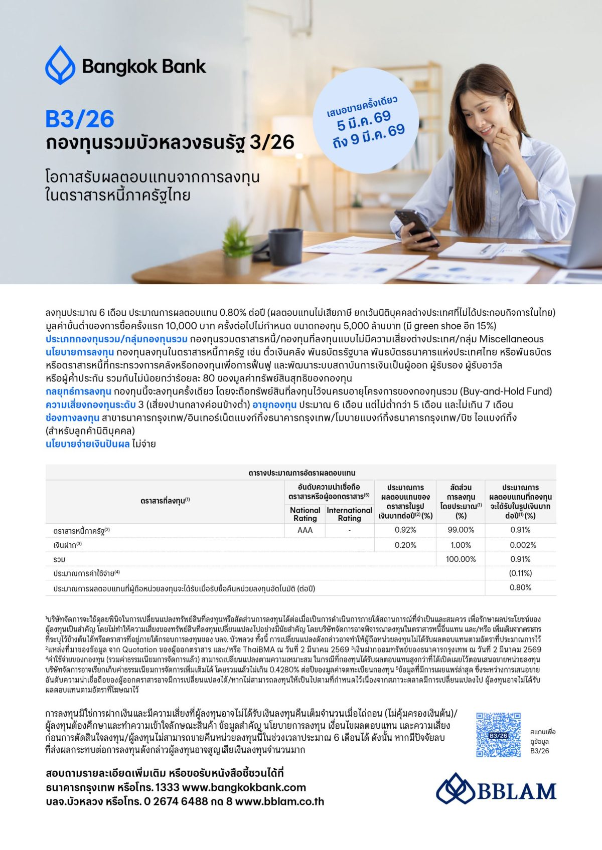 BBLAM เสนอขาย IPO กองทุนรวมบัวหลวงธนรัฐ 3/26 หรือ Bualuang Thanarat 3/26 เน้นลงทุนในตราสารหนี้ภาครัฐ IPO 5-9 มีนาคม 2569
