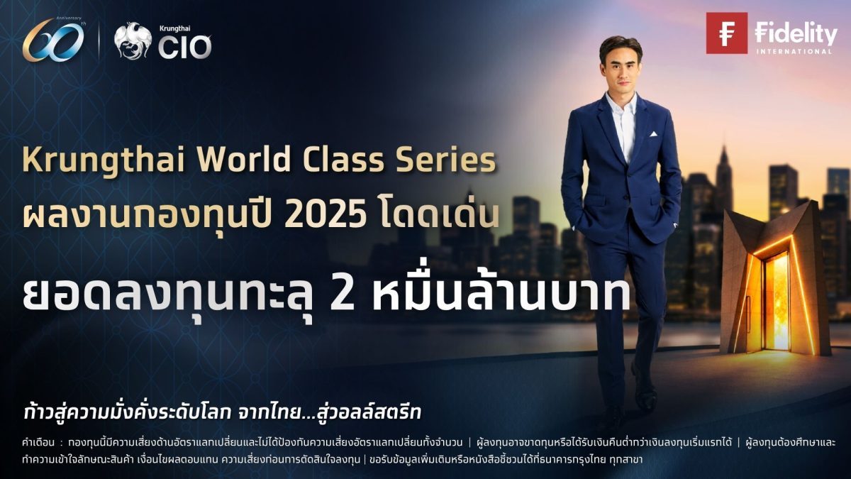 ธนาคารกรุงไทย ประกาศความสำเร็จกลุ่มกองทุน Krungthai World Class ยอด AUM ทะลุ 20,000 ล้านบาท สะท้อนความเชื่อมั่นนักลงทุนต่อการบริหารพอร์ตเชิงรุก ภายใต้ความร่วมมือกับ Fidelity International และ บลจ.กรุงไทย ชูผลการดำเนินงานปี 2025 โดดเด่น ท่ามกลางภาวะตลาดผันผวน