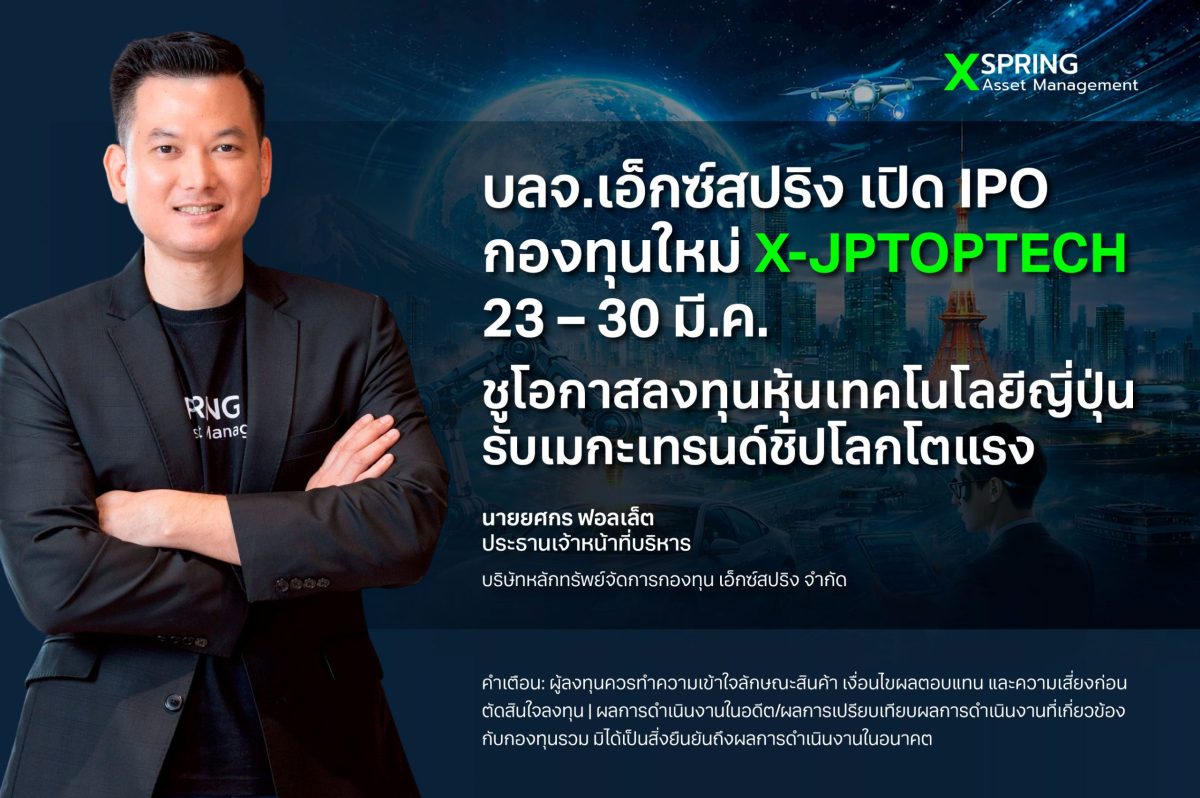 • บริษัทหลักทรัพย์จัดการกองทุน เอ็กซ์สปริง จำกัด (XSpring AM) เดินหน้าเปิดตัวกองทุนใหม่ “กองทุนเปิดเอ็กซ์สปริง หุ้นญี่ปุ่น ท็อปเทคโนโลยี (X-JPTOPTECH)” เสริมทางเลือกการลงทุนในธีมเทคโนโลยีระดับโลก IPO ระหว่างวันที่ 23-30 มีนาคม 2569 ผ่าน XSpring Mobile Application ลงทุนขั้นต่ำเพียง 5,000 บาท