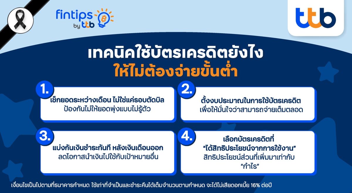 สามารถอ่านบทความฉบับเต็มได้ที่ https://www.ttbbank.com/th/fin-tips/detail/credit-card-tips-to-pay-in-full หรือ ติดตามเคล็ดลับการเงินอื่น ๆ จาก “fintips by ttb” เรื่องเงินที่รู้จริงแบบเพื่อนที่รู้ใจ คลิก https://www.ttbbank.com/link/fintips-pr