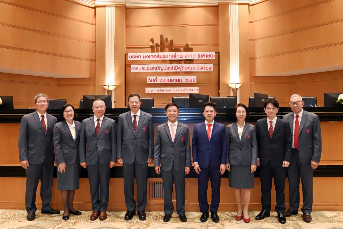 นายอดิศักดิ์ สุขุมวิทยา ประธานกรรมการ (กลาง) พร้อมด้วยนายนราธิป วิรุฬห์ชาตะพันธ์ (ที่ 4 จากขวา) กรรมการผู้จัดการใหญ่ และคณะกรรมการ บริษัท ซิงเกอร์ประเทศไทย จำกัด (มหาชน) หรือ SINGER จัดประชุมสามัญผู้ถือหุ้นประจำปี 2569 ในรูปแบบ Hybrid โดยที่ประชุมมีมติอนุมัติครบทุกวาระ สะท้อนความเชื่อมั่นต่อทิศทางธุรกิจในปี 2569 ที่เริ่มเห็นสัญญาณการเติบโตที่แข็งแกร่ง