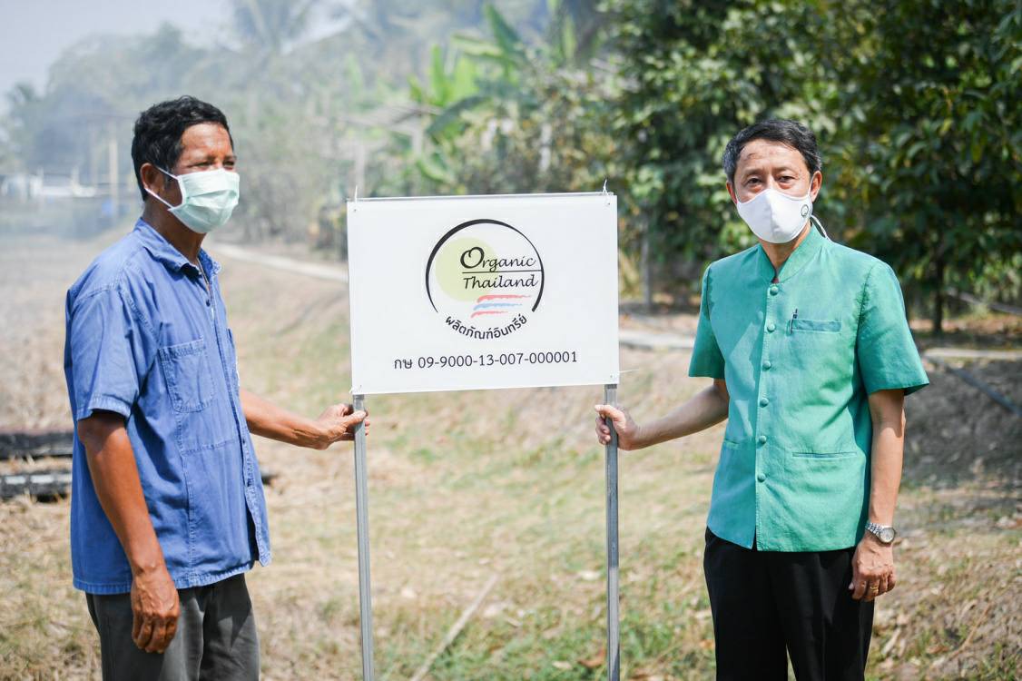 ทั้งนี้ เลขาธิการ มกอช. ได้มอบป้าย เครื่องหมายรับรองมาตรฐานเกษตรอินทรีย์ Organic Thailand และสติ๊กเกอร์ Organic Thailand มามอบให้กับ เกษตรกร ที่ผ่านมาตรฐานการรับรองเพื่อประชาสัมพันธ์ให้ผู้บริโภคและตลาดทราบว่าผู้ผลิตรายนี้ได้ รับมาตรฐานเกษตรอินทรีย์ ทั้ง ข้าว พืชผัก และผลไม้ สามารถติดสติกเกอร์ Organic Thailand เพื่อแสดงถึงผลิตผล เกษตรอินทรีย์แท้ๆ ที่ผ่านมาตรฐานตามหลักสากล มีคุณภาพ ปลอดภัย