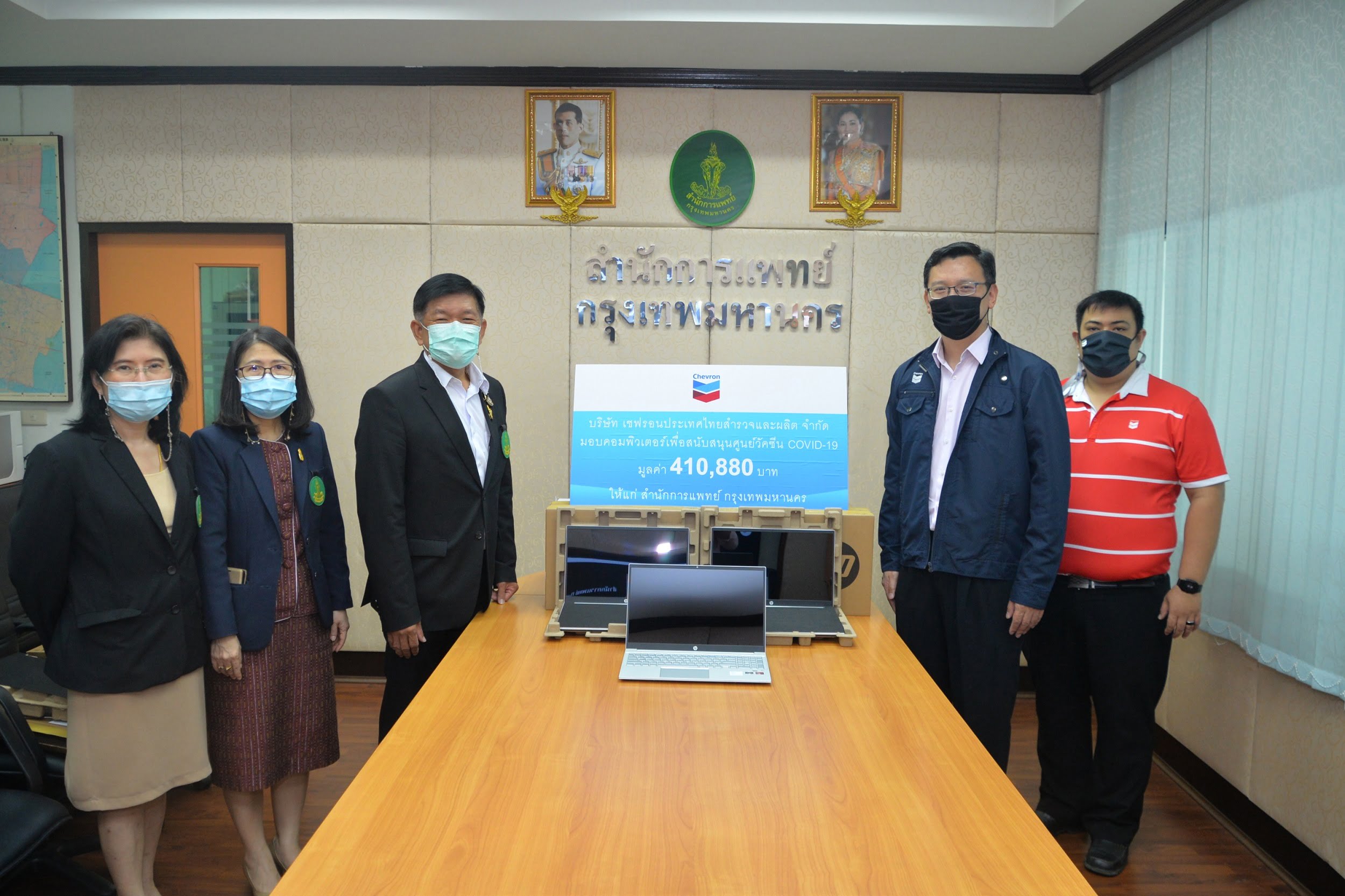 บริษัท เชฟรอนประเทศไทยสำรวจและผลิต จำกัด ร่วมสนับสนุนสำนักการแพทย์ กรุงเทพมหานคร ในภารกิจป้องกันและควบคุมการแพร่ระบาดของโรคโควิด-19 โดยเมื่อเร็วๆ นี้ นายอาทิตย์ กริชพิพรรธ ผู้จัดการใหญ่ฝ่ายสนับสนุนธุรกิจ ได้เป็นตัวแทนบริษัทฯ มอบคอมพิวเตอร์แบบพกพาใช้แล้วสภาพดีพร้อมชุดปฏิบัติการ Windows 10 จำนวน 20 เครื่อง รวมมูลค่า 410,880 บาท ให้กับนพ.สุขสันต์ กิตติศุภกร ผู้อำนวยการสำนักการแพทย์ เพื่อสนับสนุนการปฏิบัติงานของศูนย์วัคซีนป้องกันโรคติดเชื้อไวรัสโคโรนา 2019 (โควิด-19) ให้สามารถรับมือกับการแพร่ระบาดของโรคได้อย่างมีประสิทธิภาพ