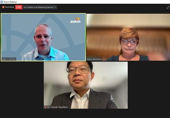 โดยได้รับเกียรติจาก ดร.ศิรศักดิ์ เทพาคำ ผู้อำนวยการศูนย์ความเป็นเลิศด้านชีววิทยาศาสตร์ เป็นประธานกล่าวเปิดงานอบรม พร้อมทั้งได้รับเกียรติจากวิทยากรกูรูผู้เชี่ยวชาญมาร่วมแลกเปลี่ยนองค์ความรู้ แบ่งปันประสบการณ์ อาทิ Paul J. Corson และ Mary Albertson จาก Association of University Technology Managers (AUTM) ร่วมด้วยวิทยากรรับเชิญ Thom Ruhe ที่มาถ่ายทอดองค์ความรู้ในหัวข้อ Spin Outs and Startups และ ดร.เลอสรร ธนสุกาญจน์ Technology Transfer Consultant ที่ให้เกียรติเข้าร่วมอบรม (panelist) ในครั้งนี้ด้วย