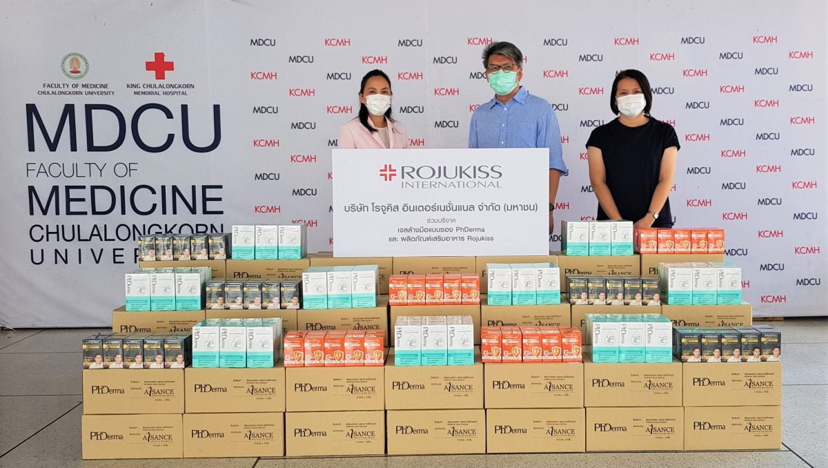 บริษัท โรจูคิส อินเตอร์เนชั่นเนล จำกัด (มหาชน) หรือ KISS ร่วมเป็นส่วนหนึ่งในการแสดงความความห่วงใยและสนับสนุนบุคลากรทางการแพทย์ โดย นายเมธี จารุมณีโรจน์ (กลาง) ผู้อำนวยการฝ่ายองค์กรและนักลงทุนสัมพันธ์ พร้อมด้วย นางสาวมณฑิชา วงศ์น่าน (ขวา) ผู้จัดการฝ่ายปฏิบัติการ สายงานการตลาด ได้เป็นตัวแทนส่งมอบผลิตภัณฑ์เพื่อสุขภาพและป้องกันการแพร่ระบาดไวรัส Covid-19 ได้แก่ เจลแอลกอฮอล์ล้างมือ PhDerma จำนวน 50,000 ซอง ผลิตภัณฑ์เสริมอาหารโรจูคิส วิตามินซี ซิงค์ บี คอมเพล็กซ์ จำนวน 105,000 กล่อง และ ผลิตภัณฑ์เสริมอาหารโรจูคิส เบต้ากลูเคน พร้อมวิตามิน ซี ดี อี จำนวน 105,000 กล่อง โดยรายการของบริจาคทั้งหมดสามารถนำไปแจกจ่ายให้กับทั้งบุคลากรทางการแพทย์ ผู้ป่วยในและผู้ติดเชื้อ ตลอดจนผู้ป่วยติดเชื้อที่เข้าร่วมในโครงการรักษาตัวที่บ้าน (Home Isolation) ของทางโรงพยาบาล โดยมี รศ.พญ.กัญญรัตน์ กรัยวิเชียร (ซ้าย) ผู้ช่วยคณบดีฝ่ายวางแผนและพัฒนา คณะแพทยศาสตร์ จุฬาลงกรณ์มหาวิทยาลัย ให้เกียรติเป็นผู้รับมอบ ณ โรงพยาบาลจุฬาลงกรณ์ นอกจากนี้ บริษัทฯ ยังได้ส่งมอบสิ่งของบริจาคตามรายการดังกล่าวเพิ่มเติมให้อีก 2 แห่ง ได้แก่ โรงพยาบาลสนามจุฬาลงกรณ์ และ วชิรพยาบาล เพื่อบำรุงสุขภาพและเป็นกำลังใจให้กับบุคลากรทางการแพทย์และผู้ป่วยที่กำลังพักรักษาตัวในโรงพยาบาลอีกด้วย
