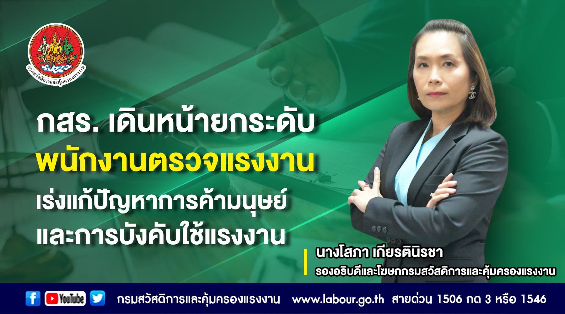 กรมสวัสดิการและคุ้มครองแรงงานเพิ่มศักยภาพพนักงานตรวจแรงงานในการรับและพิจารณาวินิจฉัยคำร้อง มุ่งป้องกันและแก้ไขปัญหาการค้ามนุษย์ด้านแรงงานและการบังคับใช้แรงงานอย่างมีประสิทธิภาพ สนองนโยบายรัฐบาล ด้านความมั่นคง
