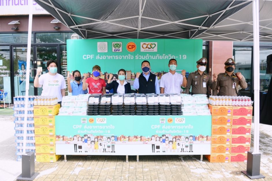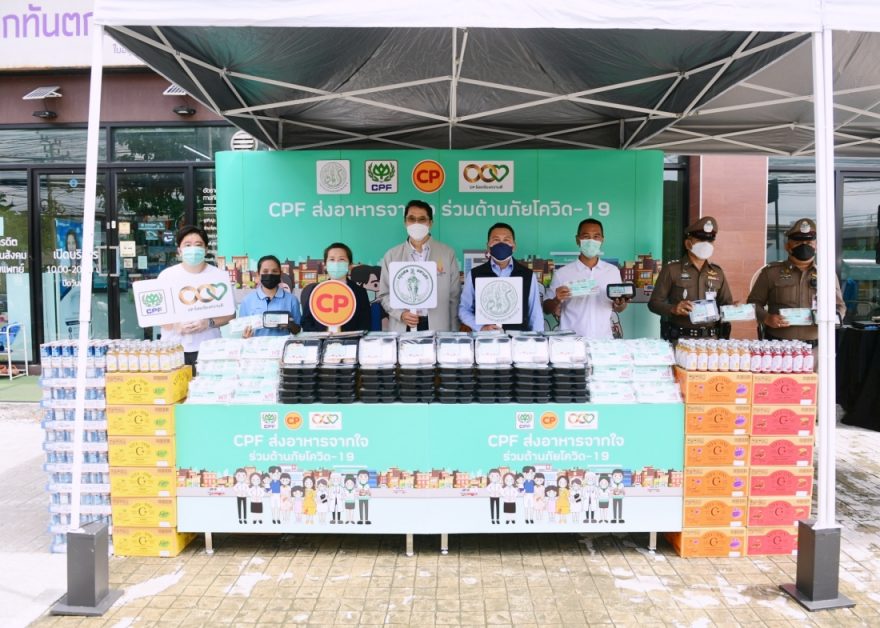 กระทรวงเกษตรและสหกรณ์ สำนักงานเขตดอนเมือง สถานีตำรวจนครบาลดอนเมือง และบริษัท เจริญโภคภัณฑ์อาหาร จำกัด (มหาชน) หรือซีพีเอฟ ผนึกกำลังสนับสนุนข้าวกล่องอุ่นร้อนพร้อมรับประทาน เครื่องดื่มวิตามิน และหน้ากากอนามัยซีพี ภายใต้โครงการ “CPF ส่งอาหารจากใจ ร่วมต้านภัยโควิด-19” เพื่อช่วยบรรเทาความเดือดร้อนแก่ประชาชนชาวดอนเมืองรวม 95 ชุมชน จากสถานการณ์โควิด และแบ่งเบาภาครัฐในการจัดการด้านอาหารให้ผู้กักตัวที่บ้าน เพื่อลดการแพร่กระจายเชื้อ โดยมี นายองอาจ คล้ามไพบูลย์ อดีตรัฐมนตรีประจำสำนักนายกรัฐมนตรี นายธัญญ์นิธิ ชวรัตน์นิธิโชติ ที่ปรึกษา รมว.เกษตรฯ พร้อมด้วย นายสุชาติ ทะเลลึก นักพัฒนาสังคม ผู้แทนผู้อำนวยการสำนักงานเขตดอนเมือง ร.ต.อ.สมหมาย กองสิน รองผู้กำกับ สน.ดอนเมือง และนางพรรณินี นันนพานิช รองกรรมการผู้จัดการอาวุโส ด้านสื่อสารองค์กรและประชาสัมพันธ์ ซีพีเอฟ ร่วมมอบแก่ น.ส.สุธรามาศ ชมชื่น ประธานชุมชนเลียบคูนายกิม 3