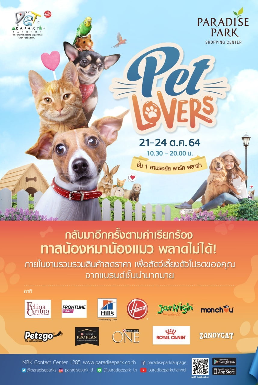 กลับมาอีกครั้งตามคำเรียกร้อง! พาราไดซ์ พาร์ค ศูนย์การค้าในเครือ  เอ็ม บี เค จัดงาน Paradise Park Pet Lovers ชวนคนรักสัตว์เลี้ยงมาเพลิดเพลินกับการช้อปสินค้าสำหรับสัตว์เลี้ยงสุดน่ารัก อาทิ อาหารสัตว์ อาหารเสริม เวชภัณฑ์ แชมพู-ผลิตภัณฑ์บำรุงขน รวมทั้ง Fashion & Accessories ของใช้ ของเล่น สำหรับน้อง ๆ จากแบรนด์ชั้นนำมากมาย ในราคาพิเศษ และพบกับกิจกรรมต่าง ๆ  ภายในงาน ไฮไลต์ที่พลาดไม่ได้ วันเสาร์ที่ 23 ตุลาคม 2564 มาร่วมสัมผัสความน่ารัก ความฉลาด ของซุปตาร์สุนัขแสนรู้ “น้องลิ้นจี่” ที่ขอขึ้นเวทีโชว์ความสามารถพิเศษสุดว้าว และวันอาทิตย์ที่ 24 ตุลาคม 2564  พบกับแมวเซเลบสุดฮอตในโลกออนโลน์อย่าง “มคิทาร์ยาน” ฉายาแมวหล่อยันดาวอังคาร ที่จะมาโชว์ตัวให้ทาสแมวได้ชื่นชมอย่างใกล้ชิด รับรองว่าคุณจะยิ่งหลงรักและเอ็นดูในทุกอิริยาบทของน้อง