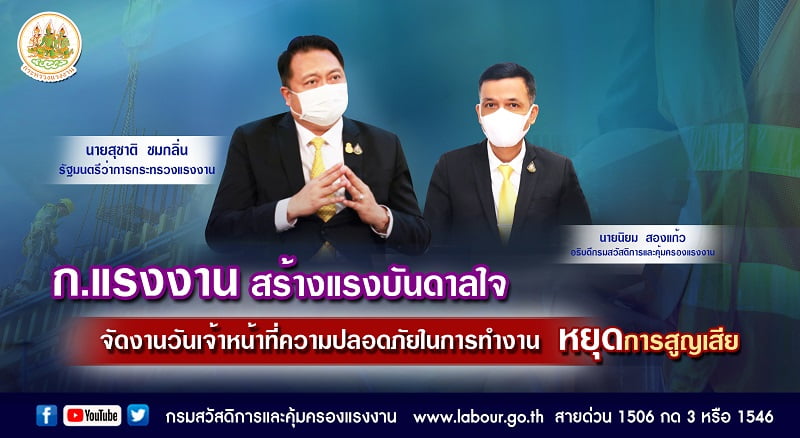 กระทรวงแรงงานจัดงาน 12 พฤศจิกายน วันเจ้าหน้าที่ความปลอดภัยในการทำงาน “สานพลังเครือข่าย จป. สู้ภัยวิกฤต เพิ่มคุณภาพชีวิตแรงงานไทย” มอบ 2 รางวัล สถานประกอบกิจการดีเด่นด้านความปลอดภัยและอาชีวอนามัยของอาเซียน