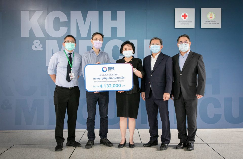 นางสาวภาวิณี องค์วาสิฏฐ์ ประธานเจ้าหน้าที่บริหาร บลจ.ทิสโก้ นำทีมมอบรายได้ส่วนหนึ่งจากค่าธรรมเนียมการบริหารจัดการกองทุน จำนวน 4,132,000 บาท ในแคมเปญ “Fighting Cancer” ให้กับกองทุน “ภูมิคุ้มกันบำบัดมะเร็งจุฬาฯ” เพื่อสนับสนุนงานวิจัยพัฒนานวัตกรรมการรักษาโรคมะเร็งและกิจกรรมอื่นในการรักษาผู้ป่วยมะเร็งของมูลนิธิคณะแพทยศาสตร์ จุฬาลงกรณ์ โดยมีนพ.ไตรรักษ์ พิสิษฐ์กุล หัวหน้าศูนย์ความเป็นเลิศด้านชีววิทยาเชิงระบบ และหัวหน้ากลุ่มวิจัยยาแอนติบอดีรักษามะเร็ง และนพ.กรมิษฐ์ ศุภพิพัฒน์ หัวหน้ากลุ่มวิจัยเซลล์บำบัดมะเร็ง ศูนย์ความเป็นเลิศด้านภูมิคุ้มกันบำบัดมะเร็ง รับมอบ