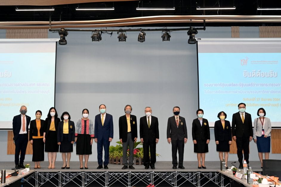 เมื่อวันที่ 27 ธันวาคม 2564 ณ ห้องประชุมใหญ่ชั้น 2 อาคาร BRI มหาวิทยาลัยเทคโนโลยีพระจอมเกล้าธนบุรี (บางขุนเทียน) นายดอน ปรมัตถ์วินัย รองนายกรัฐมนตรีและรัฐมนตรีว่าการกระทรวงการต่างประเทศ พร้อมด้วยคณะผู้ติดตาม ร่วมหารือภาพรวมการดำเนินงานที่สอดรับกับเป้าหมายเชิงยุทธศาสตร์ของประเทศในการขับเคลื่อน BCG Model และการดำเนินงาน “BCG Model @KMUTT” หรือ โมเดลการพัฒนาเศรษฐกิจแบบองค์รวมของ มจธ. ซึ่งเป็นหน่วยงานภาคการศึกษา อันจะเป็นประโยชน์ต่อแนวทางในการเตรียมความพร้อมเป็นเจ้าภาพจัดประชุมกลุ่มความร่วมมือทางเศรษฐกิจในเอเชีย-แปซิฟิก (APEC) ในปี 2565 ของประเทศไทยได้ต่อไป โดยมี รศ. ดร.สุวิทย์ แซ่เตีย อธิการบดี มจธ. พร้อมด้วยคณะผู้บริหาร บุคลากร ให้การต้อนรับ และนำชมผลงานเด่นด้าน BCG Model @KMUTT อาทิ Sustainable Consumption and Production Pilot Plant โรงงานต้นแบบผลิตยาชีววัตถุแห่งชาติ (National Biopharmaceutical Facility) และศูนย์เรียนรู้ไฟฟ้าชนบท เป็นต้น