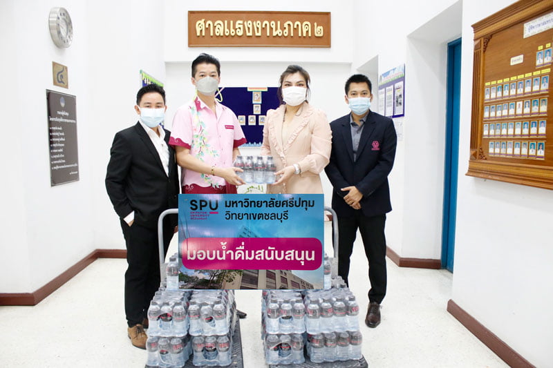 เมื่อ 23 ก.พ.65 ผู้ช่วยศาสตราจารย์ ดร.จิราพร ระโหฐาน ผู้ช่วยอธิการบดี พร้อมด้วยอาจารย์วราวุธ กลิ่นอ่อน รักษาการผู้อำนวยการสำนักงานประชาสัมพันธ์และการตลาด SPUC เป็นผู้แทนมหาวิทยาลัยศรีปทุม วิทยาเขตชลบุรี ร่วมมอบน้ำดื่มสนับสนุน แก่ ศาลจังหวัดชลบุรี โดยมี นายพฤทธิ์ สันวงค์ เลขานุการศาลแรงงานภาค 2 และนางสาวบุษกร ชีวะธรรมานนท์ ฝ่ายกิจกรรมผู้พิพากษาสมทบประจำศาลแรงงานภาค 2 เป็นผู้รับมอบ ณ ศาลแรงงานภาค 2 ชั้น 4 อาคารศาลแขวงชลบุรี อำเภอ เมืองชลบุรี จังหวัดชลบุรี