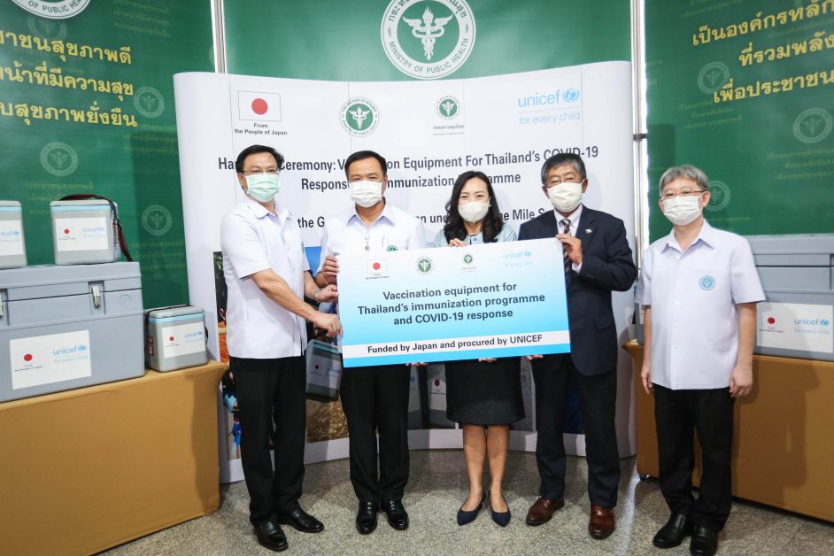 รัฐบาลญี่ปุ่นร่วมกับองค์การยูนิเซฟมอบอุปกรณ์เพื่อใช้จัดเก็บและขนส่งวัคซีนมูลค่า 25 ล้านบาท (ประมาณ 750,000 ดอลล่าสหรัฐ) ภายใต้ โครงการ Last One Mile Support เพื่อช่วยสนับสนุนประเทศไทยในการรับมือกับการแพร่ระบาดของโควิด-19 โดยมุ่งเน้นให้ทุกคนซึ่งรวมถึงประชากรกลุ่มเปราะบางที่อาศัยอยู่ในพื้นที่ห่างไกลได้รับวัคซีนที่มีประสิทธิภาพอย่างทั่วถึง