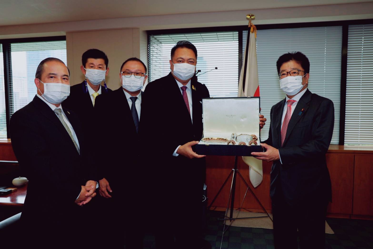 นายสุชาติ ชมกลิ่น รัฐมนตรีว่าการกระทรวงแรงงาน พร้อมด้วย นายสิงห์ทอง ลาภพิเศษพันธุ์ เอกอัครราชทูตไทย ณ กรุงโตเกียว นายสุรชัย ชัยตระกูลทอง ผู้ช่วยรัฐมนตรีประจำกระทรวงแรงงาน นายบุญชอบ สุทธมนัสวงษ์ ปลัดกระทรวงแรงงาน นางสาวสดุดี กิตติสุวรรณ อัครราชทูตที่ปรึกษา (ฝ่ายแรงงาน) และคณะ เข้าพบ นายคาโตะ คัทซึโนบุ (Mr.KATO Katsunobu) รัฐมนตรีว่าการกระทรวงสาธารณสุข แรงงาน และสวัสดิการ ญี่ปุ่น เพื่อแสดงความยินดีในโอกาสที่เข้ารับตำแหน่งใหม่ และขอบคุณที่กระทรวงสาธารณสุข แรงงาน และสวัสดิการญี่ปุ่นได้ให้การสนับสนุนกระทรวงแรงงานในด้านต่าง ๆ และทั้งสองฝ่ายยินดีจะสนับสนุนภารกิจที่เกี่ยวข้องร่วมกัน ณ ห้องรับรองกระทรวงสาธารณสุข แรงงาน และสวัสดิการญี่ปุ่น ในวันที่ 29 กันยายน 2565