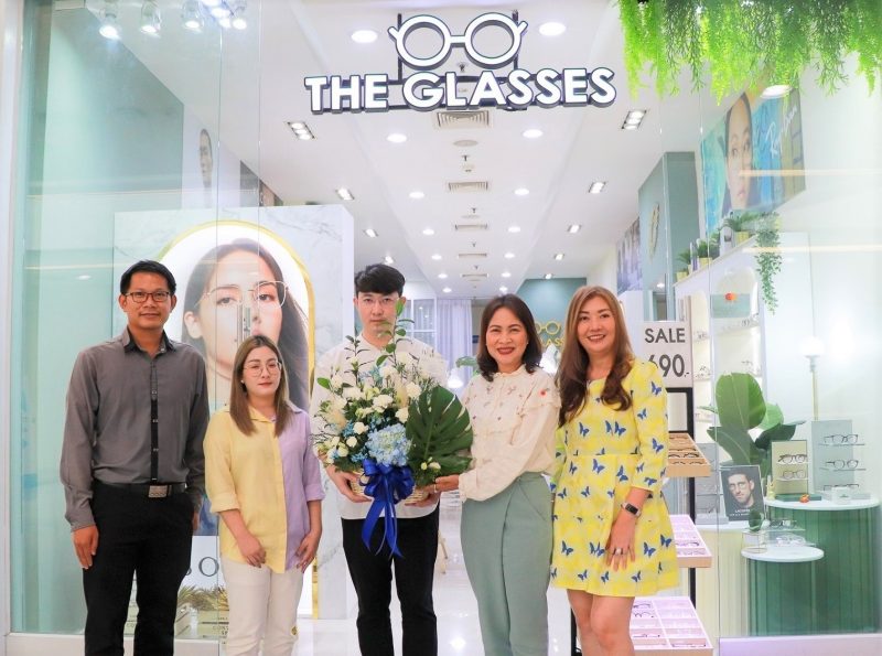 นางสาวจรูญรัตน์ สาลี กรรมการผู้จัดการ บริษัท พาราไดซ์ พาร์ค จำกัด (ที่ 4 จากซ้าย) พร้อมด้วย นางสาวอรวรรณ จึงประเสริฐศรี ผู้อำนวยการฝ่ายร้านค้าสัมพันธ์ บริษัท เอ็มบีเค เซลส์ โซลูชั่น จำกัด (ที่ 5 จากซ้าย) ร่วมยินดีแก่ นายพิภักษ์ มุขดี เจ้าของกิจการ(ที่ 3 จากซ้าย) เนื่องในโอกาส ร้าน THE GLASSES ร้านแว่นตาคุณภาพดี บริการตรวจวัดสายตา ตัดแว่น แบบครบวงจร ในราคาที่จับต้องได้ ปรับโฉมใหม่ ณ ชั้น 2 ศูนย์การค้าพาราไดซ์ พาร์ค เมื่อเร็ว ๆ นี้
