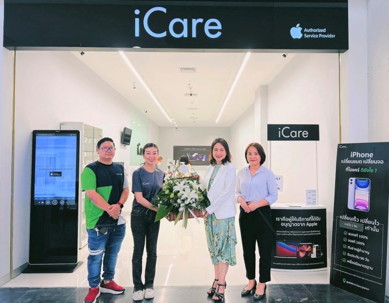 นางสาวจรูญรัตน์ สาลี กรรมการผู้จัดการ บริษัท พาราไดซ์ พาร์ค จำกัด (ที่ 3 จากซ้าย) ร่วมแสดงความยินดี iCare ศูนย์ซ่อมและบริการที่มีผู้เชี่ยวชาญแนะนำและตอบปัญหาทุกเรื่องเกี่ยวกับผลิตภัณฑ์ Apple ย้ายโลเคชั่นและปรับโฉมร้านใหม่ โดยมี นางสาวสุวดี เกียรติวิริยะขจร ผู้จัดการสาขา บริษัท คอมเซเว่น จำกัด (มหาชน) (ที่ 2 จากซ้าย) รับมอบ ณ ชั้น 2 ศูนย์การค้าพาราไดซ์ พาร์ค เมื่อเร็ว ๆ นี้