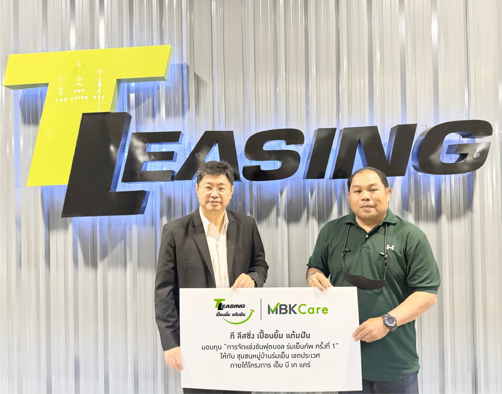 นายมงคล เพียรพิทักษ์กิจ กรรมการผู้จัดการ บริษัท ที ลีสซิ่ง จำกัด (ซ้าย ) มอบทุนการจัดการแข่งขันกีฬาฟุตบอล ร่มเย็นคัพ ครั้งที่ 1 ในกลุ่มเยาวชนอายุไม่เกิน 12 ปี ในโครงการ ที ลีสซิ่ง เปื้อนยิ้ม แต้มฝัน ภายใต้ MBK Careสนับสนุนให้เยาวชนได้ใช้เวลาว่างให้เกิดประโยชน์ สร้างความสามัคคีในหมู่คณะ และมีทักษะการเล่นกีฬาฟุตบอลที่ถูกต้องตามหลักสูตรกีฬาสมัยใหม่ โดยรายได้ทั้งหมดของการจัดการแข่งขันมอบให้เป็นสาธารณะประโยชน์แก่กลุ่มคนพิการ และกลุ่มผู้สูงอายุในชุมชน โดยมี นายทรงยศ อัมพุมน ประธานชุมชนหมู่บ้านร่มเย็น (ขวา) เป็นผู้รับมอบ ณ สำนักงาน ชั้น 3 ศูนย์การค้าพาราไดซ์ เพลส เมื่อเร็ว ๆ นี้