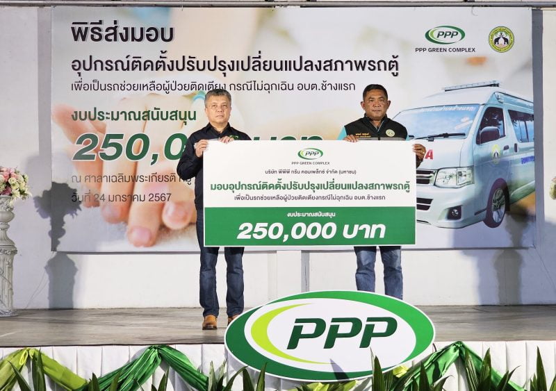 บริษัท พีพีพี กรีน คอมเพล็กซ์ จำกัด (มหาชน) ร่วมกับ อบต.ช้างแรก จัดพิธีส่งมอบอุปกรณ์ติดตั้งปรับปรุงเปลี่ยนแปลงสภาพรถตู้ เพื่อเป็นรถช่วยเหลือผู้ป่วยติดเตียงกรณีไม่ฉุกเฉิน อบต.ช้างแรก เพื่อช่วยดูแลผู้ป่วย-ผู้สูงอายุ บริการรับส่งพบแพทย์โรงพยาบาล ช่วยให้มีคุณภาพชีวิตดีขึ้น ด้วยงบประมาณสนับสนุน 250,000 บาท