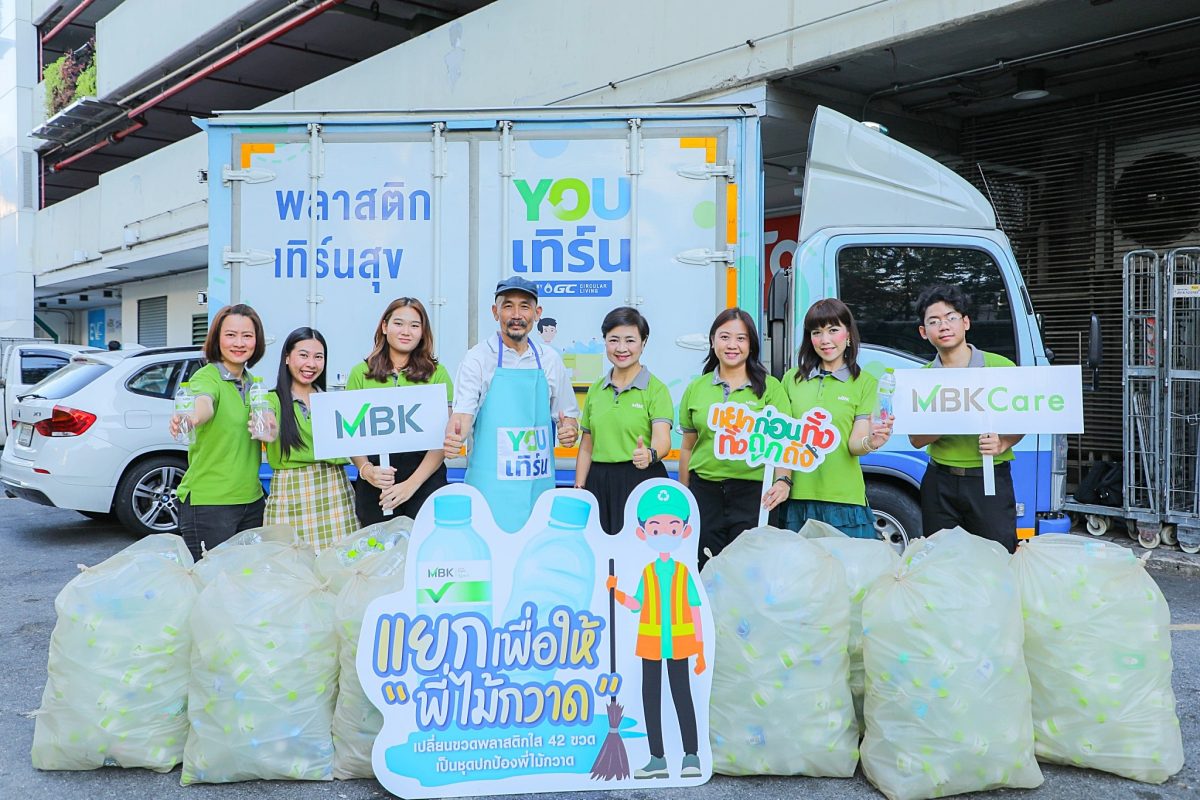 เนื่องในวันรีไซเคิลโลก (Global Recycling Day) ตรงกับวันที่ 18 มีนาคมของทุกปี เอ็ม บี เค และ บริษัทในเครือ ตอกย้ำการเป็นองค์กรไทยหัวใจสีเขียว ร่วมลดปริมาณการเกิดขยะและลดการปล่อยก๊าซเรือนกระจกที่เป็นสาเหตุของภาวะโลกร้อน โดยคัดแยกขยะก่อนทิ้งและนำกลับมารีไซเคิลเพิ่มมูลค่าขยะให้เกิดประโยชน์สูงสุด โดยสานต่อกิจกรรม MBK Spirit อาสาทำดี ปันน้ำใจสู่สังคม แยกเพื่อให้…“พี่ไม้กวาด” นำโดย นางสาวศตกมล วรกุล ผู้อำนวยการฝ่ายสื่อสารองค์กร บริษัท อินเทลลิเจ้นท์ ครีเอทีฟ แอนด์ มาร์เก็ตติ้ง จำกัด เป็นตัวแทนผู้บริหารมอบขวด PET จำนวนกว่า 2,400 กิโลกรัมให้กับ YOU เทิร์น PLATFORM by GC แพลตฟอร์มบริหารจัดการขยะพลาสติกครบวงจร เพื่อนำขยะเข้าสู่กระบวนการอัพไซเคิล แปรรูปหมุนเวียนกลับมาใช้ใหม่เป็นชุดปฏิบัติงานแถบสีสะท้อนแสงของเจ้าหน้าที่พนักงานกวาดขยะ สนับสนุนการทำงานอย่างปลอดภัยในโครงการมือวิเศษ กรุงเทพมหานคร “แยกเพื่อให้…พี่ไม้กวาด” โดย 1 ชุดใช้ขวด PET จำนวน 42 ขวด ซึ่งการส่งมอบขวด PET ในครั้งนี้สามารถนำไปผลิตชุดได้มากกว่า 1,100 ชุด นอกจากนี้ ศูนย์การค้าในเครือเอ็ม บี เค ธุรกิจโรงแรม ธุรกิจอสังหาริมทรัพย์ และธุรกิจกอล์ฟในเครือเอ็ม บี เค ยังมีการติดตั้งจุดรับบริจาคขวดพลาสติกใช้แล้ว (ขวด PET) อีกด้วย