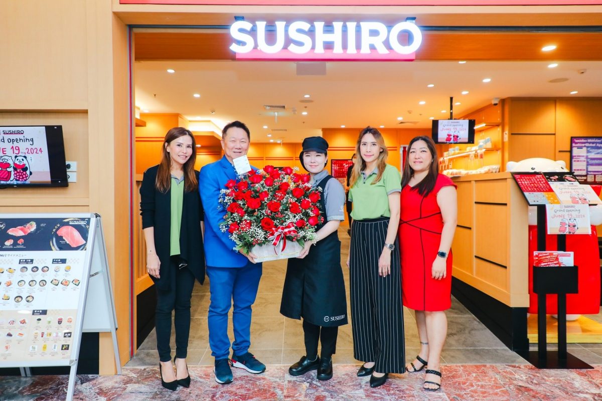 ศูนย์การค้าเอ็ม บี เค เซ็นเตอร์ นำโดย สมพล ตรีภพนารถ (ที่ 2 จากซ้าย) ประธานเจ้าหน้าที่บริหารธุรกิจศูนย์การค้า พร้อมด้วย ฐิติรัตน์ ประสงค์ผล (ที่ 1 จากซ้าย) ผู้อำนวยการอาวุโสฝ่ายขายพื้นที่เช่า และ ชวรมย์ มังคละคีรี (ที่ 4 จากซ้าย) ผู้อำนวยการฝ่ายผู้เช่าสัมพันธ์กลางและสนับสนุนการขาย บริษัท เอ็ม บี เค จำกัด (มหาชน) มอบกระเช้าดอกไม้ร่วมแสดงความยินดีเนื่องในโอกาส Grand Opening ฉลองเปิดสาขาใหม่ SUSHIRO ซูชิสายพานชื่อดังจากญี่ปุ่น โดยมี Hinako Watanabe (ที่ 3 จากซ้าย) operation manager รับมอบดอกไม้และให้การต้อนรับ ณ ชั้น 3 โซน A เมื่อเร็ว ๆ นี้