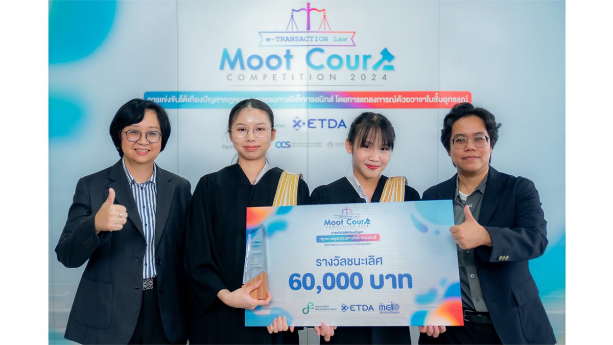 สำนักงานพัฒนาธุรกรรมทางอิเล็กทรอนิกส์ (ETDA) กระทรวงดิจิทัลเพื่อเศรษฐกิจและสังคม (ดีอี) จับมือพาร์ทเนอร์ด้านกฎหมาย รัฐ-เอกชน จัดใหญ่! “e-Transaction Law Moot Court Competition 2024” รอบชิงชนะเลิศ ณ ห้องพิจารณาคดี 304 ศาลแพ่งรัชดา ขอแสดงความยินดีกับ ทีมไก่ย่างสามสหาย คว้าแชมป์ เป็นสุดยอดว่าที่นักกฎหมายรุ่นใหม่ พร้อมเข้าสู่เส้นทางอาชีพนักกฎหมายยุคดิจิทัล รับเงินรางวัล 60,000 บาท โล่รางวัล เกียรติบัตร และโอกาสร่วมเรียนรู้งานกับหน่วยงานชั้นนำของประเทศ
