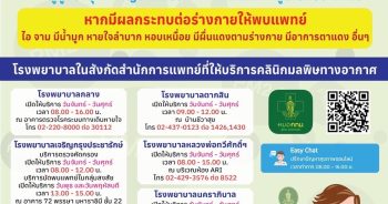 นางเลิศลักษณ์ ลีลาเรืองแสง ผู้อำนวยการสำนักการแพทย์ (สนพ.) กทม. กล่าวถึงการเตรียมความพร้อมระบบเฝ้าระวังและประเมินความเสี่ยงกลุ่มเปราะบางในช่วงที่ค่าฝุ่น PM2.5 มีแนวโน้มสูงขึ้นว่า สนพ. ได้บูรณาการความร่วมมือกับภาคีเครือข่ายในพื้นที่ให้ความรู้ข้อแนะนำแก่ประชาชนในพื้นที่โดยรอบ โดยบุคลากรทางการแพทย์และสาธารณสุขจะเน้นการเข้าถึงกลุ่มเปราะบางในพื้นที่ เพื่อให้คำแนะนำในการดูแลสุขภาพ รวมถึงการสวมใส่หน้ากากอนามัยที่ถูกต้อง พร้อมแจกหน้ากากอนามัยให้กับกลุ่มเปราะบางในช่วงที่มีค่าฝุ่นสูง รวมทั้งรายงานสถิติผู้ป่วยที่ได้รับผลกระทบจากสถานการณ์ฝุ่นละออง ติดตามสถานการณ์ฝุ่นละออง เพื่อปฏิบัติการออกช่วยเหลือผู้ป่วยยามจำเป็น หากมีการรายงานค่าฝุ่นในพื้นที่ระดับเริ่มมีผลกระทบต่อสุขภาพ สำหรับแผนปฏิบัติการป้องกันรองรับสถานการณ์ฝุ่น PM2.5 สนพ. ได้เปิดศูนย์ปฏิบัติการการแพทย์ฉุกเฉินด้านสาธารณสุขกรณีฝุ่น PM 2.5 เกิน 75 ไมโครกรัม/ลูกบาศก์เมตร (มคก./ลบ.ม.) โรงพยาบาลในสังกัด เปิดคลินิกมลพิษทางอากาศ ดังนี้ โรงพยาบาลกลาง โทร . 0 2220 8000 ต่อ 30112 (วันจันทร์ – วันศุกร์ เวลา 08.00 – 16.00 น.) โรงพยาบาลตากสิน โทร. 0 2437 0123 ต่อ 1426, 1430 … Continue reading กทม. เตรียมพร้อมเปิดศูนย์ปฏิบัติการการแพทย์ฉุกเฉินด้านสาธารณสุข-คลินิกมลพิษทางอากาศในช่วงค่าฝุ่น PM2.5 สูง