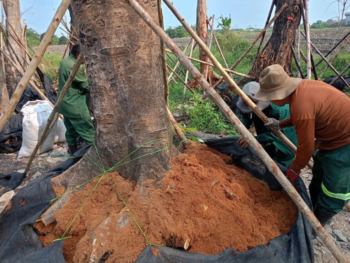นางสาวยุวนุช นงพรมมา ผู้อำนวยการเขตหนองจอก กทม. กล่าวว่า สนย. ได้มีหนังสือถึงสำนักงานเขตหนองจอก ขอความอนุเคราะห์ล้อมต้นไม้บริเวณถนนดังกล่าวเพื่อก่อสร้างถนนตามโครงการดังกล่าว เมื่อเดือน ก.ย. 67 โดยสำนักงานเขตฯ ได้ขออนุมัติล้อมย้ายต้นไม้ตามระเบียบเรียบร้อยแล้ว และได้ย้ายต้นไม้ออกไปบางส่วน ซึ่งได้ประชุมหน่วยงานที่เกี่ยวข้อง เช่น สนย. สมาชิกสภา กทม. และชุมชนในพื้นที่เขตหนองจอก เพื่อชี้แจงกรณีการก่อสร้างถนน รวมทั้งหาแนวทางการดำเนินการเกี่ยวกับการก่อสร้างและการย้ายต้นไม้ จากการพิจารณาร่วมกัน สนย. แจ้งว่า กทม. มีความจำเป็นต้องนำต้นไม้ออก สำนักงานเขตฯ จึงได้ล้อมย้ายต้นไม้จากบริเวณที่กระทบการก่อสร้างไปอนุบาลไว้ในสถานที่ที่จัดเตรียมไว้เพื่อนำไปปลูกต่อไป ทั้งนี้ เมื่องานขยายถนนแล้วเสร็จจะนำต้นไม้ใหม่ที่เหมาะสมมาปลูกทดแทนบริเวณด้านข้างทั้งหมด เพื่อความร่มรื่นและสวยงาม ส่วนสาเหตุที่ไม่สามารถนำต้นไม้เดิมกลับมาปลูกได้นั้น เนื่องจากต้นไม่เดิมที่ย้ายออกไปส่วนใหญ่เป็นต้นหางนกยูงที่มีขนาดใหญ่และอายุมาก ซึ่งมักมีปัญหาผุจากด้านใน หากนำกลับมาปลูกบริเวณริมถนนเดิมอาจก่อให้เกิดอันตรายต่อประชาชนที่ใช้เส้นทางสัญจรได้