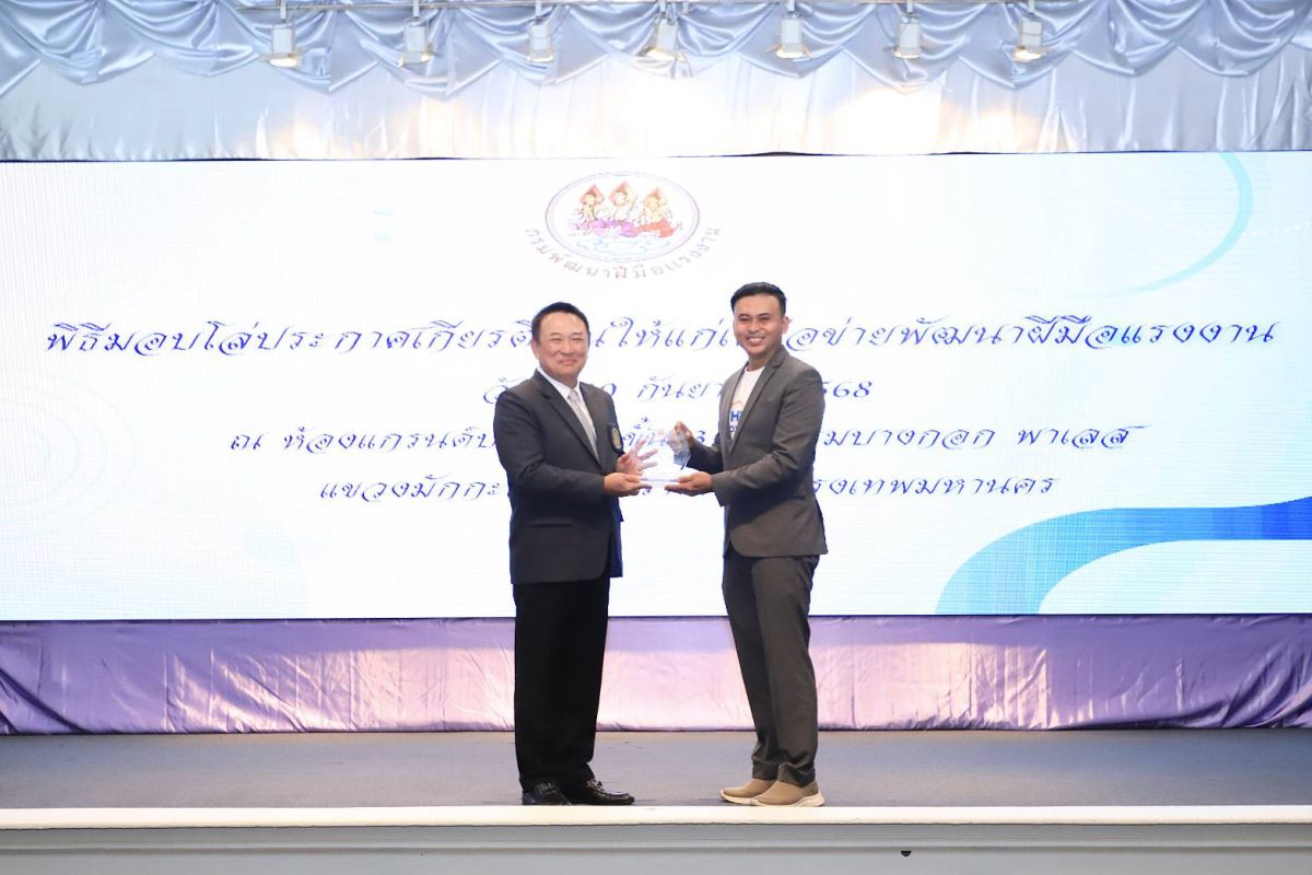 นายธีรพล รอดเฉื่อย ผู้ช่วยกรรมการผู้จัดการ สายบริหารงานจัดส่งและติดตั้ง บริษัท โฮม โปรดักส์ เซ็นเตอร์ จำกัด (มหาชน) หรือ โฮมโปร เข้ารับมอบโล่เกียรติคุณ “เครือข่ายพัฒนาทักษะฝีมือแรงงาน” จากกรมพัฒนาฝีมือแรงงาน โดยมีนายเดชา พฤกษ์พัฒนรักษ์ อธิบดีกรมพัฒนาฝีมือแรงงาน เป็นประธานมอบโล่เกียรติคุณ