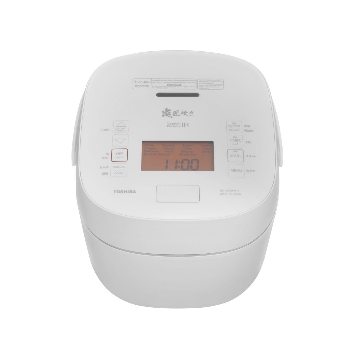 รุ่น RC-18VXWTH ถือเป็นหม้อหุงข้าวเรือธงที่มาพร้อมเทคโนโลยี Induction Heating (IH) และระบบสุญญากาศอันเป็นเอกสิทธิ์เฉพาะของโตชิบา โดยเทคโนโลยีสุญญากาศช่วยดูดอากาศจากเมล็ดข้าวออกก่อนการหุง ทำให้ข้าวสามารถดูดซึมน้ำได้รวดเร็วและทั่วถึง จึงลดเวลาในการแช่ข้าว จากนั้นหม้อจะเริ่มเพิ่มความร้อนช้าๆ และเพิ่มความ ร้อนสูงอย่างต่อเนื่อง ส่งผลให้เนื้อข้าวที่หุงเสร็จแล้วมีความนุ่มฟู ชุ่มฉ่ำ และหอมหวานยิ่งขึ้น หม้อชั้นในผลิตจากวัสดุ Binchotan Kamado ความหนาก้นหม้อ 7 มิลลิเมตรและโค้งมน 60 องศาสร้างการหมุนเวียนความร้อนที่ทรงพลัง ภายนอกเคลือบผิวอินฟราเรดเพื่อสะท้อนและกระจายความร้อน ผนวกกำลังกับวัสดุภายในที่เคลือบไทเท เนียมเพชรที่ช่วยในการนำและกระจายความร้อนอย่างสม่ำเสมอ จึงมั่นใจในรสชาติของทุกอณูเมล็ดข้าว พร้อมฟังก์ชันควบคุมแรงดันอัจฉริยะที่ช่วยดึงรสชาติ ความหนึบ และความหอมออกมาได้อย่างเต็มที่ ขณะเดียวกันก็มีดีไซน์เรียบหรูสไตล์ญี่ปุ่นและแผงควบคุมที่ใช้งานได้อย่างสะดวกสบาย เหมาะสำหรับผู้ที่ให้ความสำคัญกับเทคโนโลยีการหุงข้าวระดับพรีเมียม