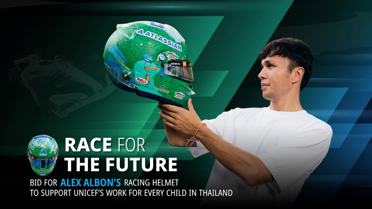 อเล็กซ์ อัลบอน อังศุสิงห์ นักแข่งรถฟอร์มูล่าวันชาวไทยเพียงหนึ่งเดียวในปัจจุบัน มอบหมวกกันน็อกที่ออกแบบขึ้นเป็นพิเศษสำหรับการแข่งขันสิงคโปร์กรังด์ปรีซ์ 2025 เพื่อนำออกประมูลการกุศล สนับสนุนงานของยูนิเซฟ ประเทศไทย โดยรายได้ทั้งหมดจะนำไปช่วยพัฒนาคุณภาพชีวิตของเด็กที่ขาดโอกาสทั่วประเทศ