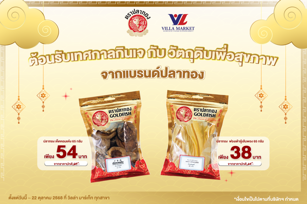 เตรียมตัวถือศีลกินเจอย่างอิ่มบุญและอร่อย ด้วยวัตถุดิบคุณภาพเยี่ยมจากแบรนด์ ปลาทอง ผลิตภัณฑ์ประกอบอาหารจีน ภายใต้การดูแลของเครือเฮอริเทจ ที่ยกขบวนสินค้าหลากหลายรายการมามอบส่วนลดสุดพิเศษให้สายเจได้เลือกสรรอย่างคุ้มค่า เพื่อสร้างสรรค์เมนูเจที่ครบเครื่องและดีต่อสุขภาพ อาทิเช่นปลาทอง เห็ดหอมแห้ง 65 กรัม ราคาเต็ม 60 บาท ลดเหลือเพียง 54 บาท ปลาทอง ฟองเต้าหู้เส้นพอง 65 กรัม ราคาเต็ม 44 บาท ลดเหลือเพียง 38 บาท ตั้งแต่วันนี้ – 22 ตุลาคม 2568 ที่ วิลล่า มาร์เก็ท ทุกสาขา