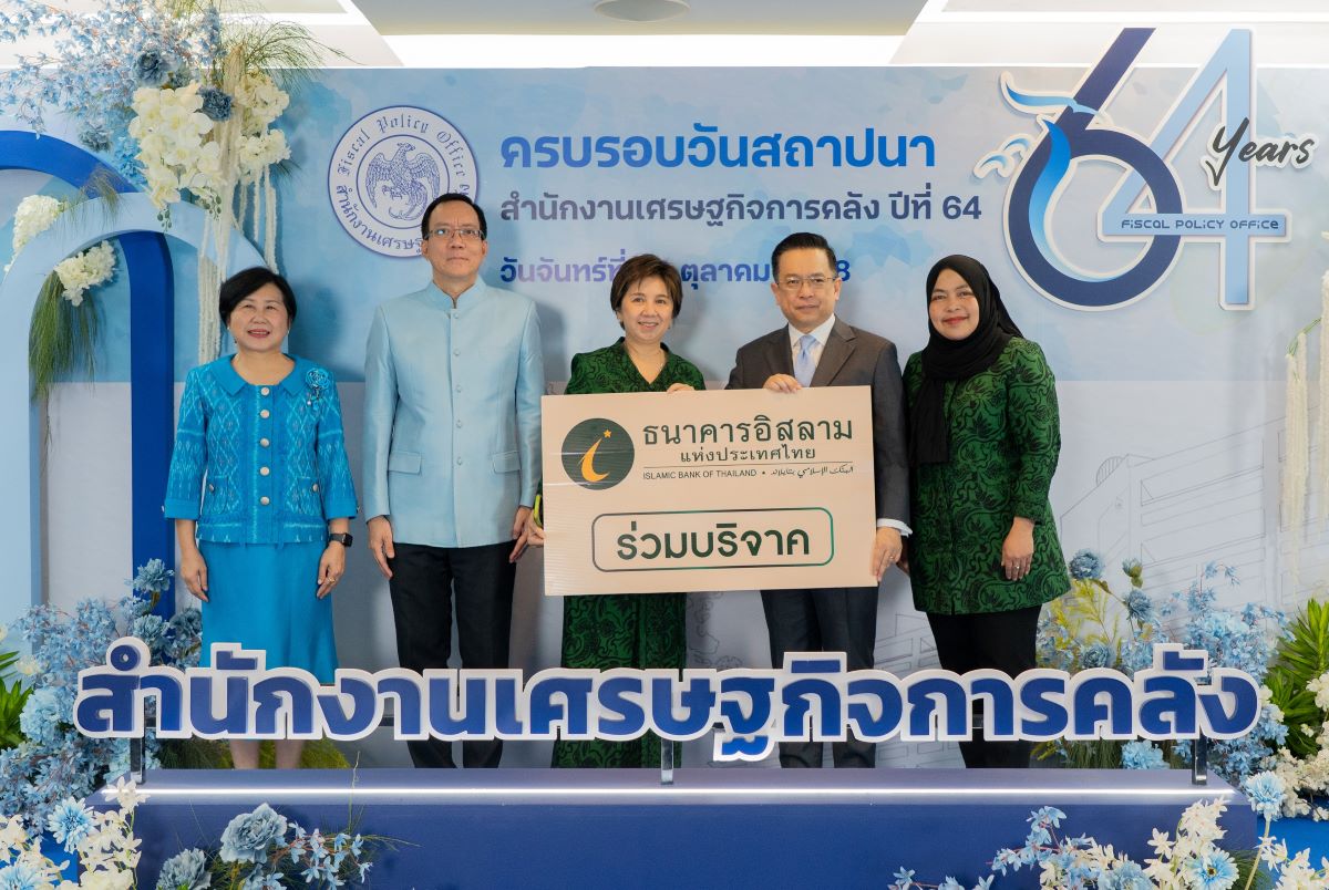 ธนาคารอิสลามแห่งประเทศไทย (ไอแบงก์) โดย นางวิมลรัตน์ ปิยสถาพรพงศ์ ผู้ช่วยกรรมการผู้จัดการ ผู้บริหารกลุ่มงานการเงิน และ นางนุจรี ภักดีเจริญ ผู้ช่วยกรรมการผู้จัดการ ผู้บริหารกลุ่มงานธุรกิจรายย่อย เข้าร่วมแสดงความยินดี พร้อมมอบเงินสมทบเข้ากองทุนสวัสดิการสำนักงานเศรษฐกิจการคลัง (สศค.) เนื่องในโอกาสครบรอบวันสถาปนาสำนักงานเศรษฐกิจการคลังปีที่ 64 โดยมี นายวินิจ วิเศษสุวรรณภูมิ ผู้อำนวยการสำนักงานเศรษฐกิจการคลัง นางสาวสุมาลี สถิตชัยเจริญ รองผู้อำนวยการสำนักงานเศรษฐกิจการคลัง พร้อมด้วยนายวโรทัย โกศลพิศิษฐ์กุล ที่ปรึกษาด้านเศรษฐกิจระหว่างประเทศ ร่วมให้การต้อนรับ ณ ห้องประชุม ป๊วยอึ๊งภากรณ์ ชั้น 7 สำนักงานเศรษฐกิจการคลัง