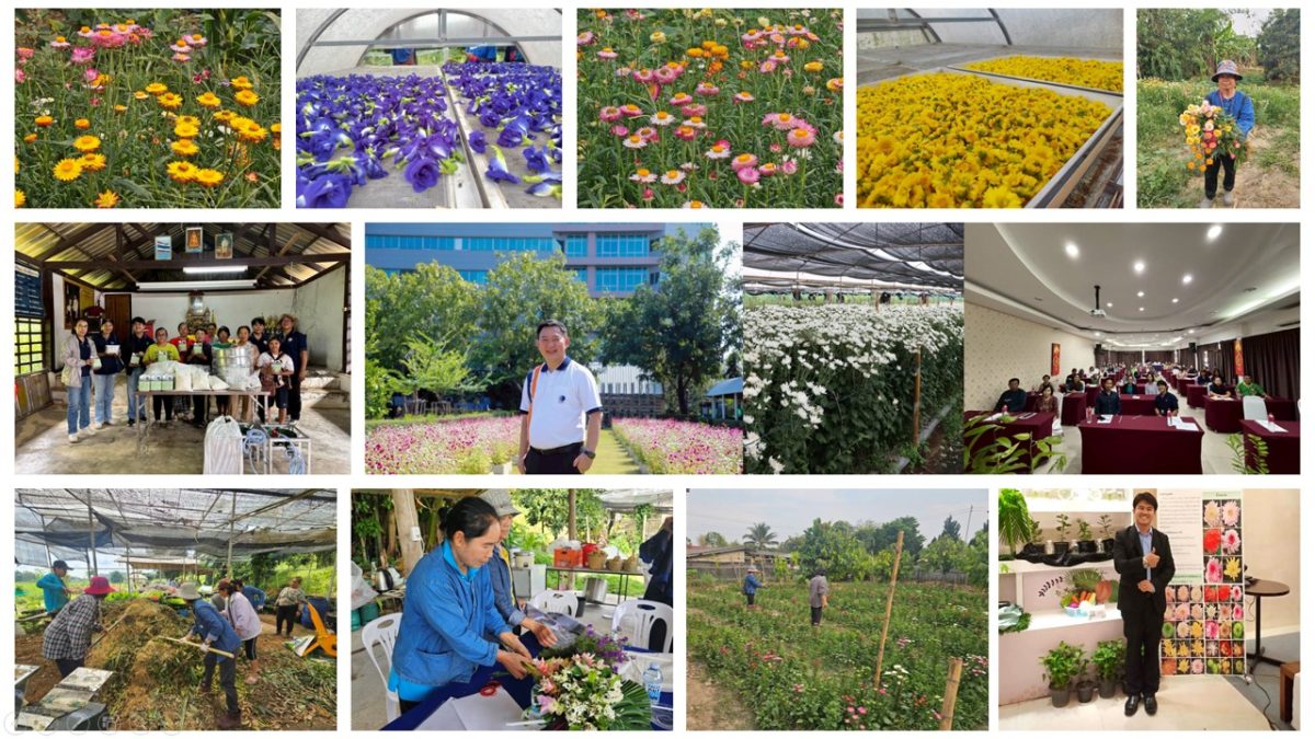 การสนับสนุนให้ปลูกไม้ตัดดอก เมื่อวันที่ 5 สิงหาคม 2568 ทีมนักวิจัย วว. ลงพื้นที่จังหวัดพะเยา (อำเภอเมืองพะเยา และอำเภอปง) มีเกษตรกรสมัครเข้าร่วมโครงการกว่า 15 ราย โดยได้รับการสนับสนุนให้ปลูกไม้ตัดดอก เช่น หญ้าหางกระต่าย มากาเร็ต ดอกกระดาษ คัตเตอร์ เบญจมาศ และแกลดิโอลัส รวมถึงไม้ดอกเพื่อการแปรรูป เช่น เก๊กฮวย กระเจี๊ยบแดง คาโมมายล์ และอัญชัน ซึ่งสามารถแปรรูปเป็นผลิตภัณฑ์อบแห้งเพื่อใช้ในอุตสาหกรรมอาหารและเครื่องดื่มได้ นอกจากนี้ยังมีการใช้ประโยชน์จากวัสดุเหลือใช้ทางการเกษตร เช่น ฟางข้าว ซังข้าวโพด และชานอ้อย มาพัฒนาเป็นวัสดุปรับปรุงดินและวัสดุคลุมดิน สำหรับการปลูกเลี้ยงไม้ดอกไม้ประดับ ก่อให้เกิดรายได้ที่มั่นคงกว่า 35,000 บาท/ราย
