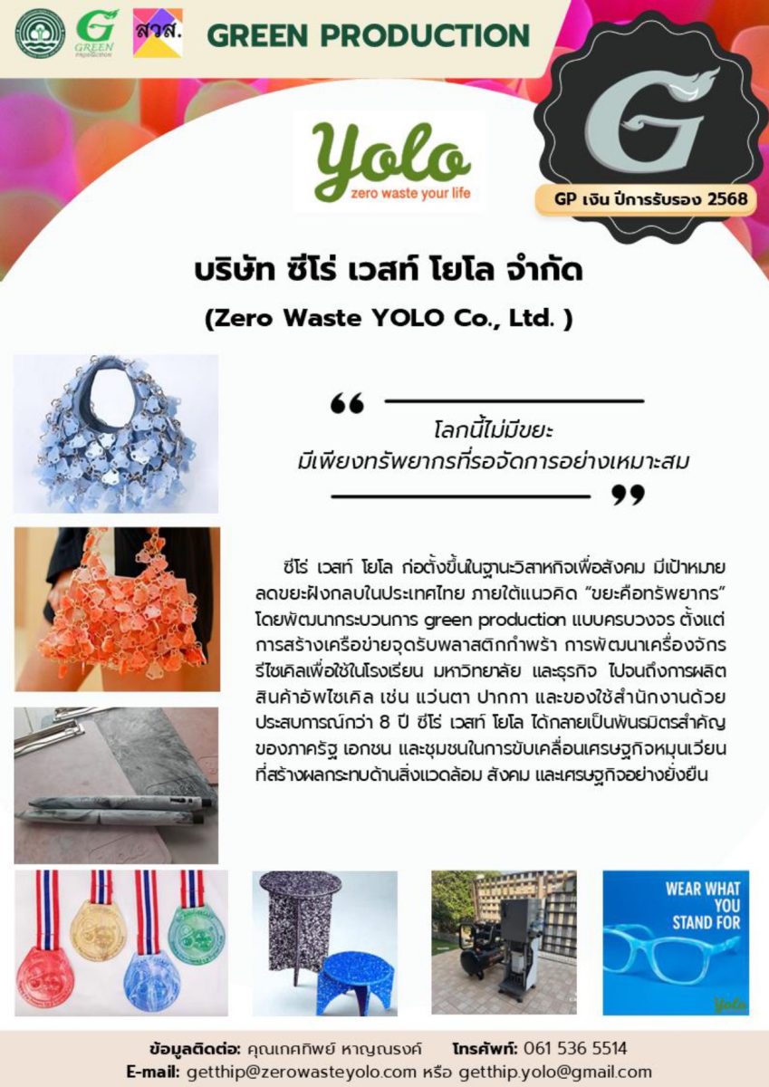 - บริษัท ซีโร่ โยโล จำกัด (กรุงเทพฯ) ธุรกิจสตาร์ทอัพรักษ์โลก ผลิตถุงผ้าและของใช้ซ้ำได้ โดยใช้ระบบการผลิตคาร์บอนต่ำ สอดคล้องกับวิถีชีวิตยุคใหม่ที่ใส่ใจสิ่งแวดล้อม