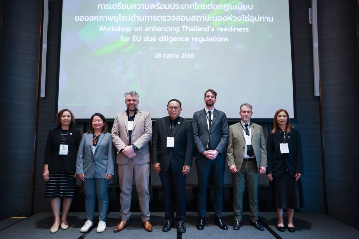 สถาบันสิ่งแวดล้อมไทย (TEI) ร่วมกับ องค์กรความร่วมมือระหว่างประเทศของเยอรมัน (GIZ) จัดการประชุม “การเตรียมความพร้อมประเทศไทยต่อกฎระเบียบของสหภาพยุโรปด้านการตรวจสอบสถานะของห่วงโซ่อุปทาน” ณ โรงแรมวีกรุงเทพ – เอ็มแกลเลอรี่ ภายใต้โครงการ “Enhancing Readiness of Thailand towards the EU Sustainable Trade Schemes” เพื่อเตรียมความพร้อมภาคเกษตรไทยให้สอดคล้องกับกฎระเบียบด้านความยั่งยืนที่สำคัญของสหภาพยุโรปและเยอรมนี ได้แก่ กฏระเบียบของสหภาพยุโรปว่าด้วยสินค้าปลอดการทำลายป่า (EU Deforestation Regulation – EUDR), คำสั่งการตรวจสอบความยั่งยืนขององค์กร (Corporate Sustainability Due Diligence Directive – CSDDD), และ พระราชบัญญัติการตรวจสอบสถานะห่วงโซ่อุปทานของเยอรมนี (LkSG) ทั้งนี้เพื่อนำเสนอผลการศึกษาเบื้องต้น และระดมความคิดเห็นจากผู้มีส่วนได้ส่วนเสียเพื่อกำหนดแนวทางการปรับตัว