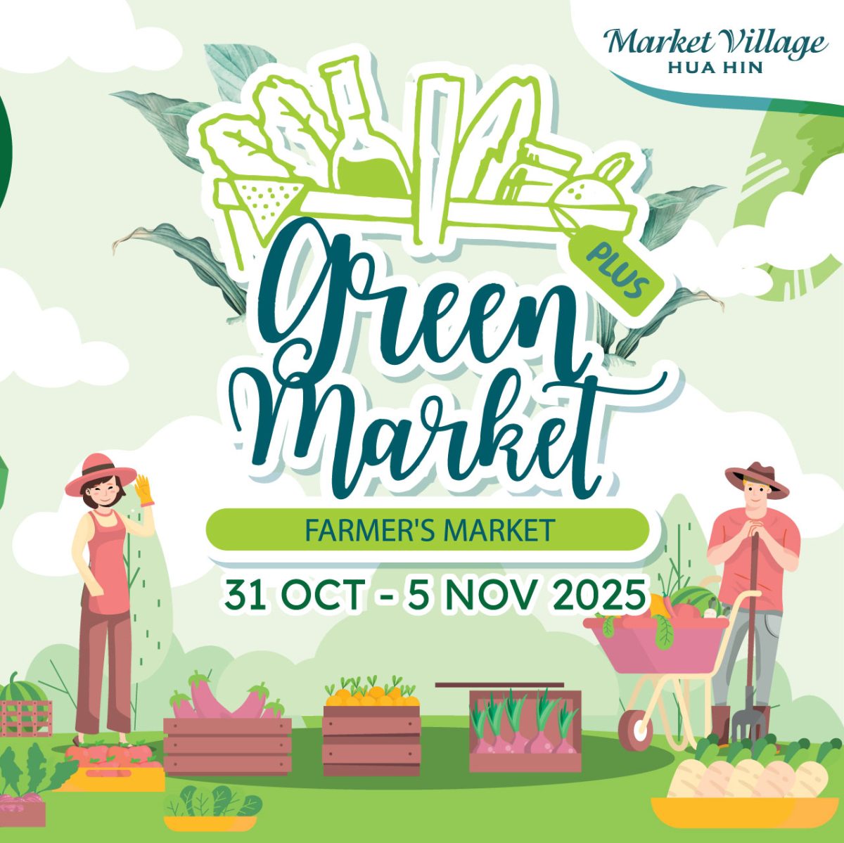 ช้อปอาหารและผลิตภัณฑ์แปรรูปของท้องถิ่น ในราคาถูก ที่เต็มด้วยคุณภาพและคุณค่าสูง และยังมีตลาดต้นไม้จากร้านค้าในเขตประจวบฯ ชาวเกษตรกรหัวหิน เจ้าของไร่เจ้าของสวนมาจำหน่ายเอง ผลผลิตสด ๆ จาก “ฟาร์มเมอร์มืออาชีพ” ผลิตภัณฑ์แปรรูป พร้อมกิน พร้อมใช้ และสินค้า Handmade กิจกรรม Workshop งานประดิษฐ์ สินค้านาทีทอง ช้อปแบบคุ้มราคาถูกสุด ต้นไม้ ไม้ดอก ไม้สวน ปุ๋ยยา กว่า 8 ร้านค้า ครบทุกแนว.พบกับพวกเรา ชาวกรีน และ Tree หัวหิน พบกันวันที่ 31 ต.ค.-2 พ.ย. 2568 ตั้งเเต่เวลา 11.00 – 20.00 น. บริเวณด้านหน้าศูนย์การค้า Market Village Hua Hin