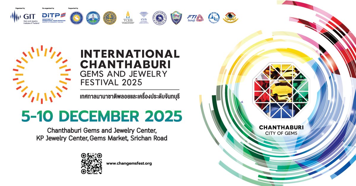 สถาบันวิจัยและพัฒนาอัญมณีและเครื่องประดับแห่งชาติ (องค์การมหาชน) ร่วมกับ กรมส่งเสริมการค้าระหว่างประเทศ กระทรวงพาณิชย์ จังหวัดจันทบุรี และสมาคมผู้ค้าอัญมณีและเครื่องประดับจันทบุรี จัดงาน เทศกาลนานาชาติพลอยและเครื่องประดับจันทบุรี 2025 หรือ International Chanthaburi Gems and Jewelry Festival 2025 ภายใต้แนวคิด “จันทบุรี นครอัญมณี” ในระหว่างวันที่ 5-10 ธันวาคม 2568 ณ จังหวัดจันทบุรี เพื่อส่งเสริมและสนับสนุนให้จังหวัดจันทบุรีก้าวสู่การเป็น “นครอัญมณี” รวมทั้งผลักดันให้ประเทศไทยเป็นศูนย์กลางการค้าอัญมณีและเครื่องประดับที่สำคัญในระดับโลก