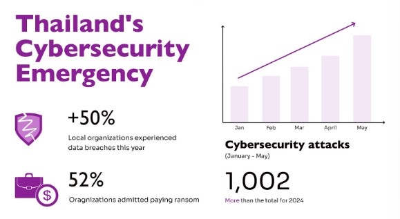 La French Tech Bangkok ได้จัดงานสัมมนาเชิงลึกเกี่ยวกับวิกฤตภัยคุกคามทางไซเบอร์ที่กำลังทวีความรุนแรงขึ้นในประเทศไทย. โดยจัด ณ Fabbit Global Gateway Bangkok (อโศก) ภายในงานมีผู้บริหารและผู้เชี่ยวชาญด้านเทคโนโลยีเข้าร่วมอย่างคับคั่ง โดยมีการเปิดเผยข้อมูลที่น่าตกใจว่า ประเทศไทยประสบภัยด้านความมั่นคงปลอดภัยไซเบอร์ไปแล้ว 1,002 ครั้ง ภายในห้าเดือนแรกของปี 2568 ซึ่งสูงกว่าจำนวนตลอดทั้งปีที่ผ่านมา