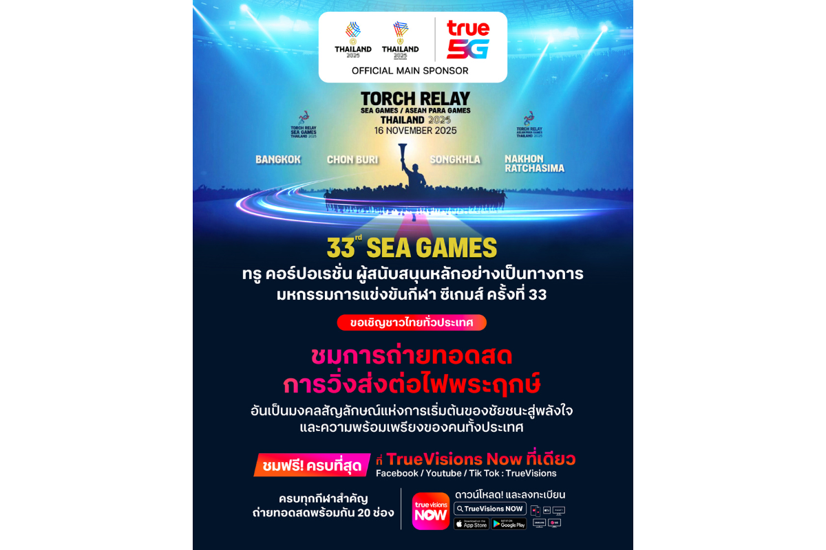 คนไทยเตรียมตัวให้พร้อม ร่วมเป็นส่วนหนึ่งของหน้าประวัติศาสตร์กีฬาอาเซียนไปกับแอปพลิเคชัน TrueVisions Now ที่พร้อมถ่ายทอดสดพิธี “วิ่งอัญเชิญไฟพระฤกษ์” เปิดการแข่งขันกีฬาซีเกมส์ – อาเซียนพาราเกมส์ 2025 ส่งสัญญาณตรงจากทั้ง 4 พื้นที่จัดการแข่งขัน ได้แก่ กรุงเทพมหานคร ชลบุรี นครราชสีมา และสงขลา ให้คนไทยทั่วประเทศได้ร่วมติดตามบรรยากาศสุดประทับใจแบบใกล้ชิดทุกช่วงสำคัญ